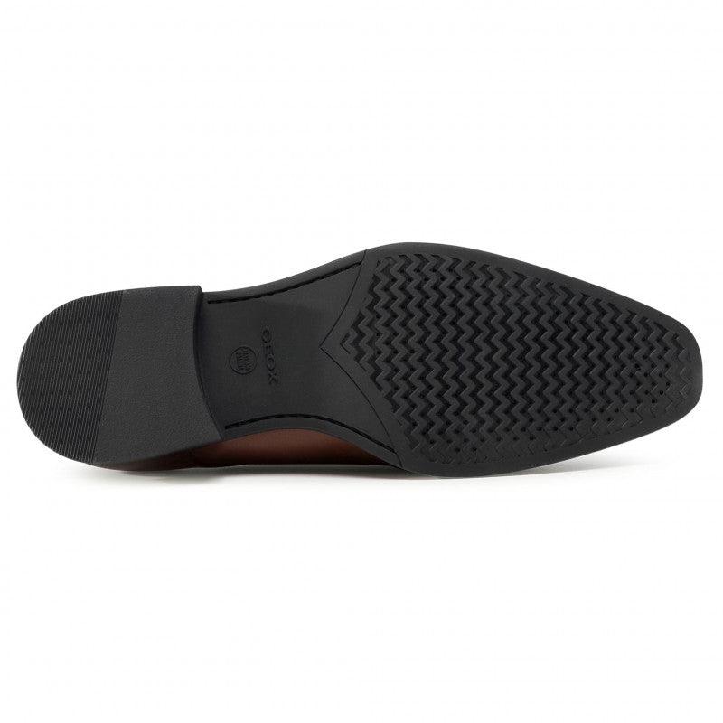 נעלי עור של המותג GEOX גאוקס בעיצוב קלאסי ואלגנטי, בצבע חום ובגימור מדוייק. גובה העקב: 2,5 ס"מ.