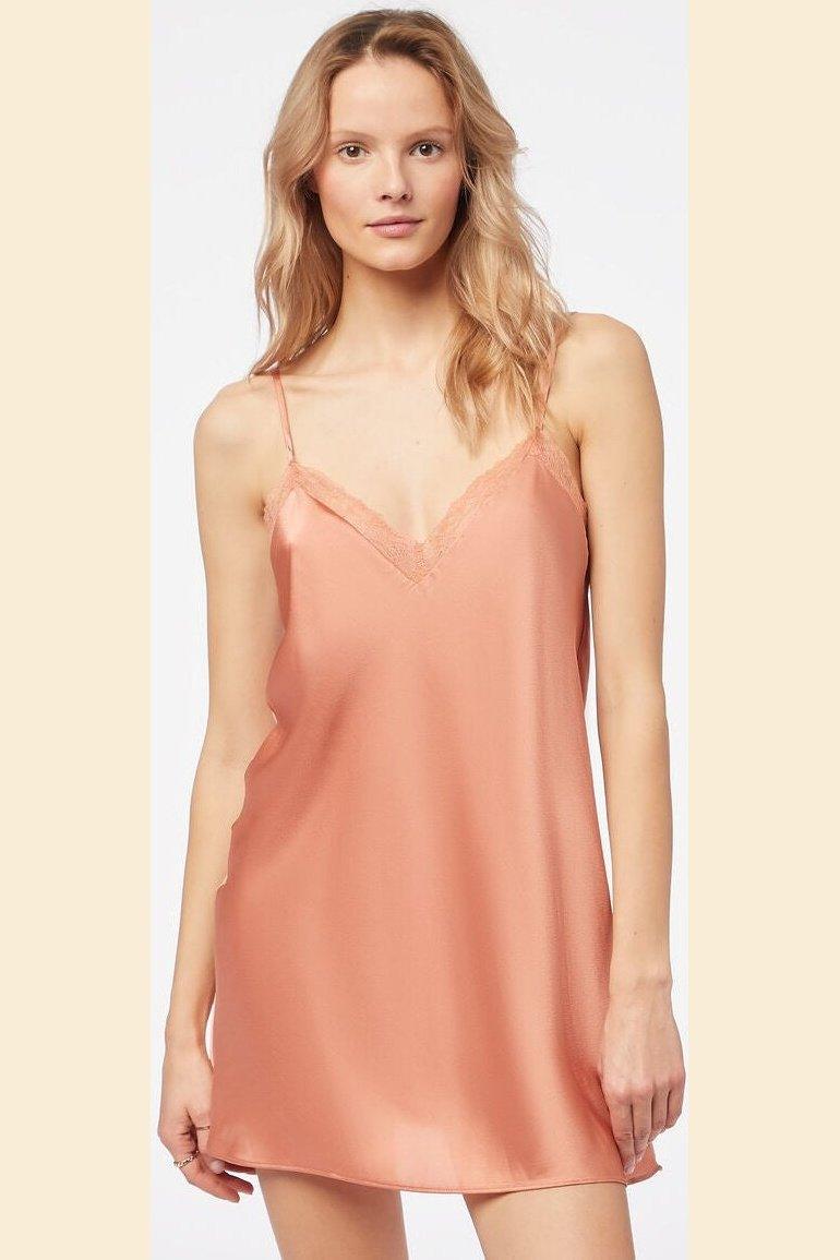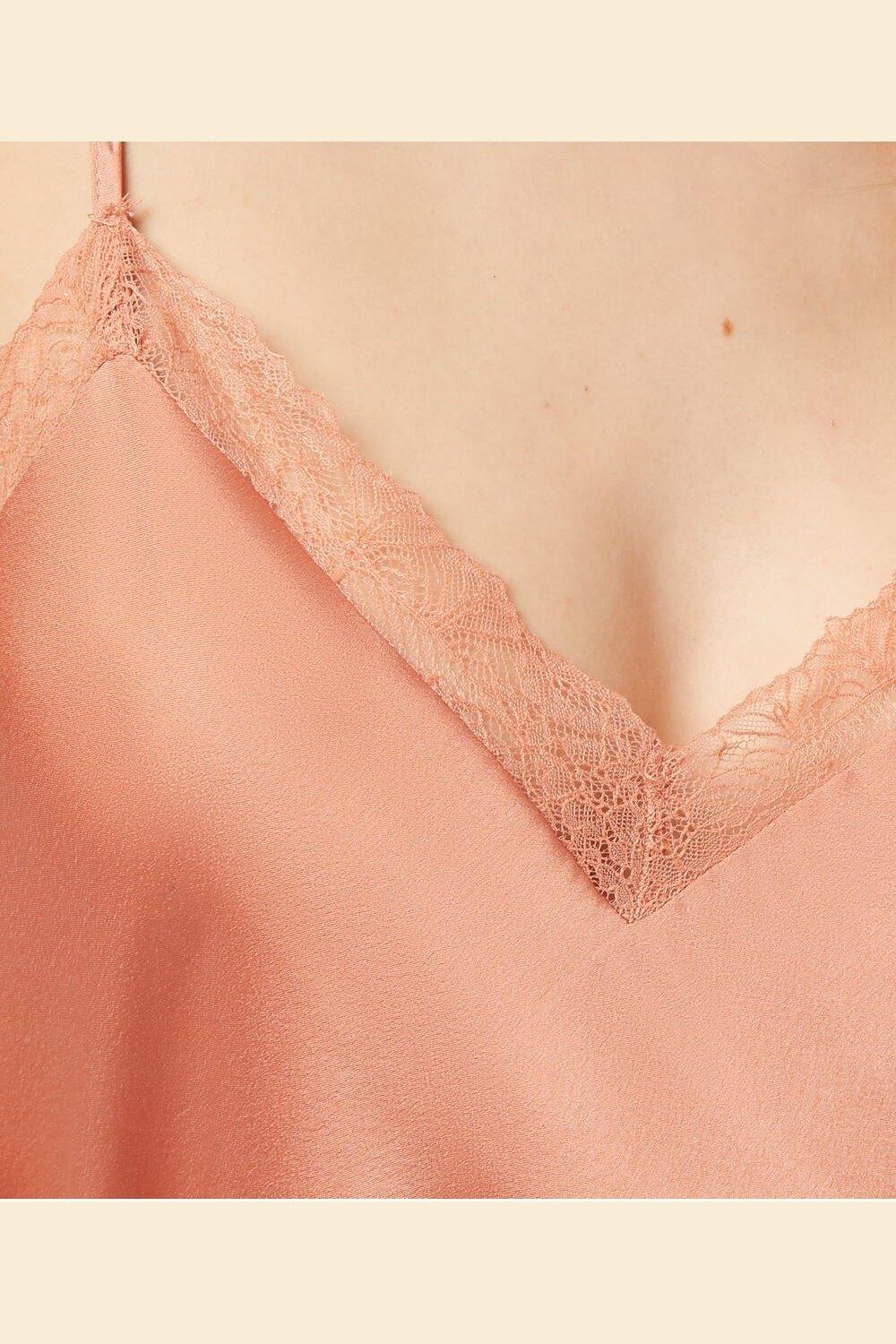 כותונת סאטן בשילוב תחרה SENTIMENT בצבע אפרסק