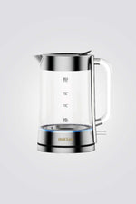 קומקום חשמלי מזכוכית בעיצוב יוקרתי.