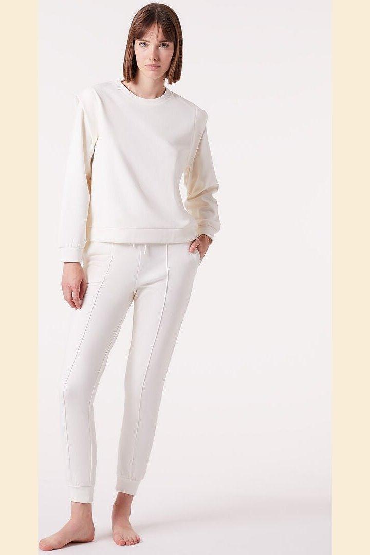 מכנסי ג'וגר ארוכים מבית המותג הצרפתי ETAM, מבד רך ונעים במיוחד ובטנה חמימה ומפנקת. גזרה ישרה עם תפרים מודגשים לאורך הרגל, מותן אלסטית גבוהה ושרוך קשירה, שני כיסים צידיים וסיומת מנג'ט בקרסוליים. למראה מושלם וסופר נוח בבית או בחוץ.