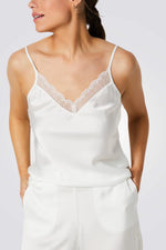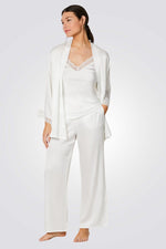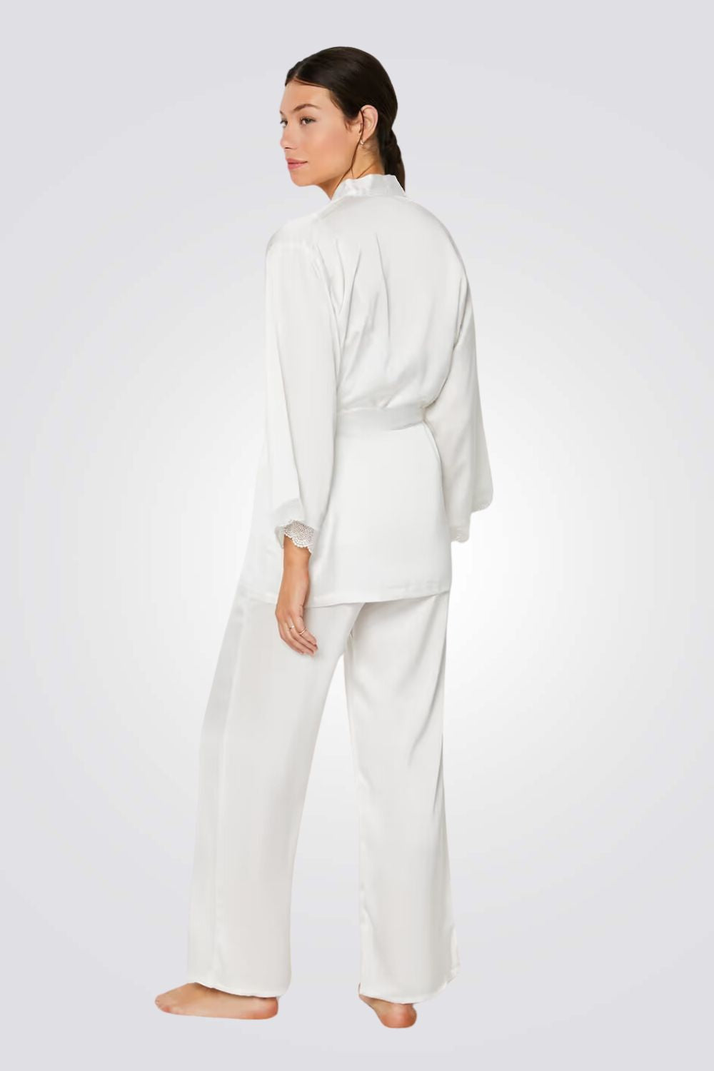 סט פיג'מת סאטן לבנה בשלושה חלקים