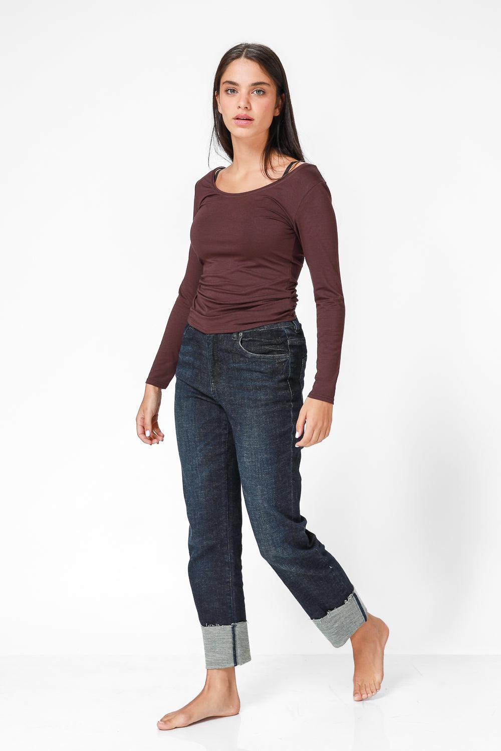 טישירט ג'רסי מפתח רחב בצבע בורדו | קנת קול
