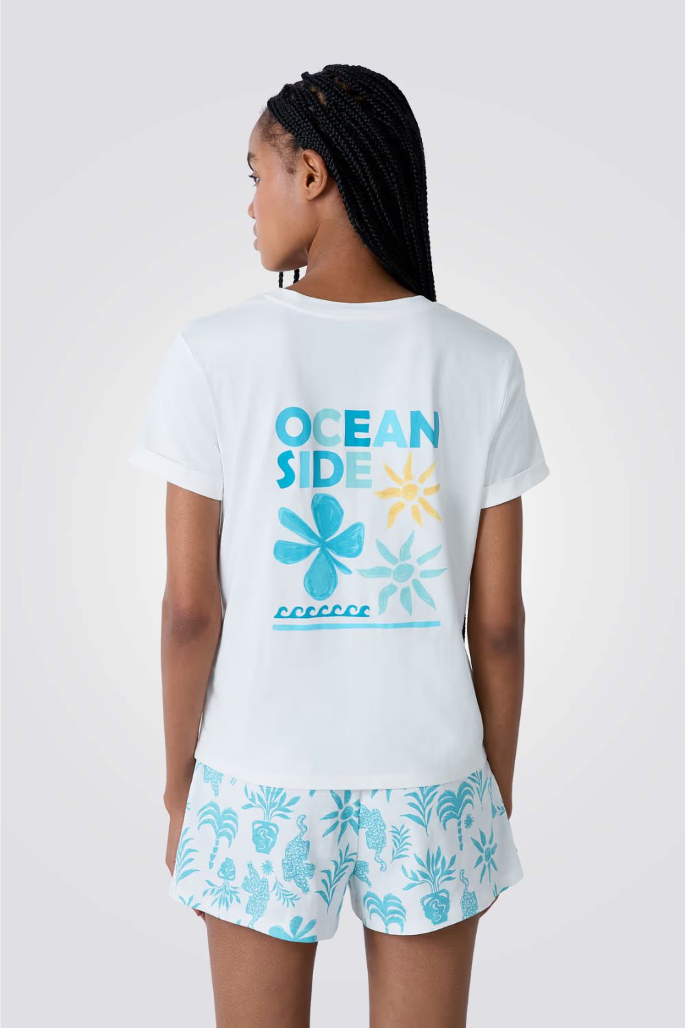 חולצת פיג'מה קצרה ELLEN בצבע לבן