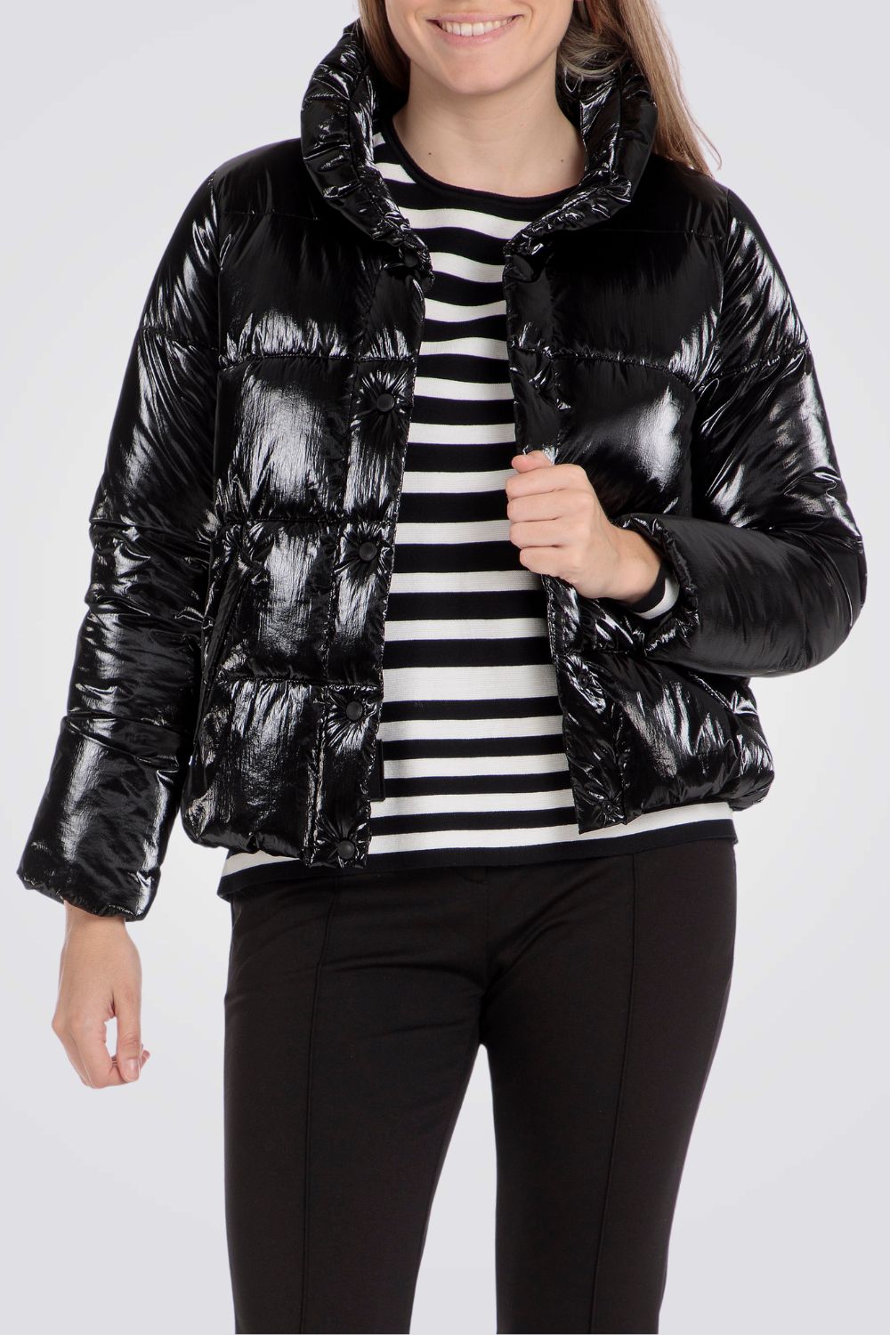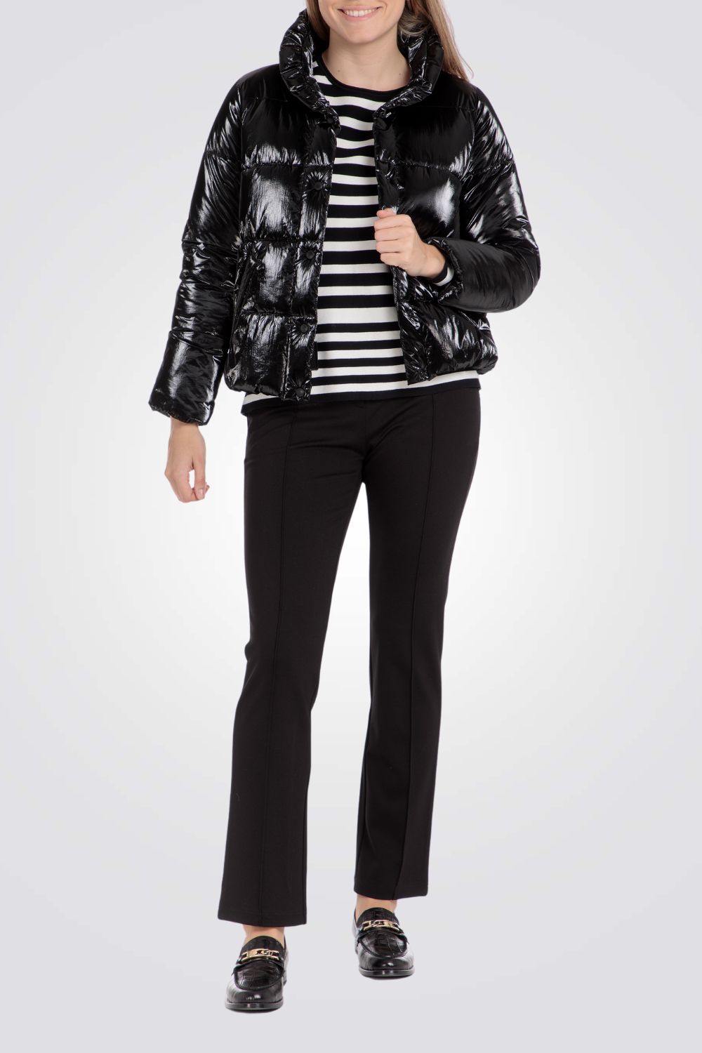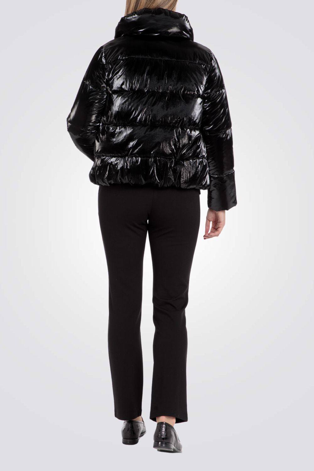 מעיל מרופד לנשים מבית המותג PUNT ROMA בגימור מטאלי בצבע שחור, עם שרוולים ארוכים, צווארון גבוה וסגירת לחצניות.