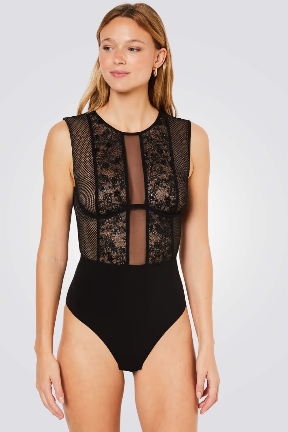 בגד גוף חצי שקוף FASCINANTE בצבע שחור
