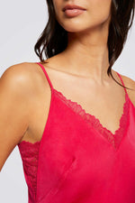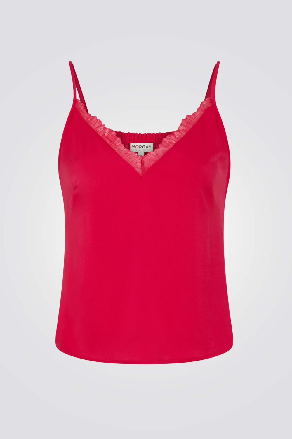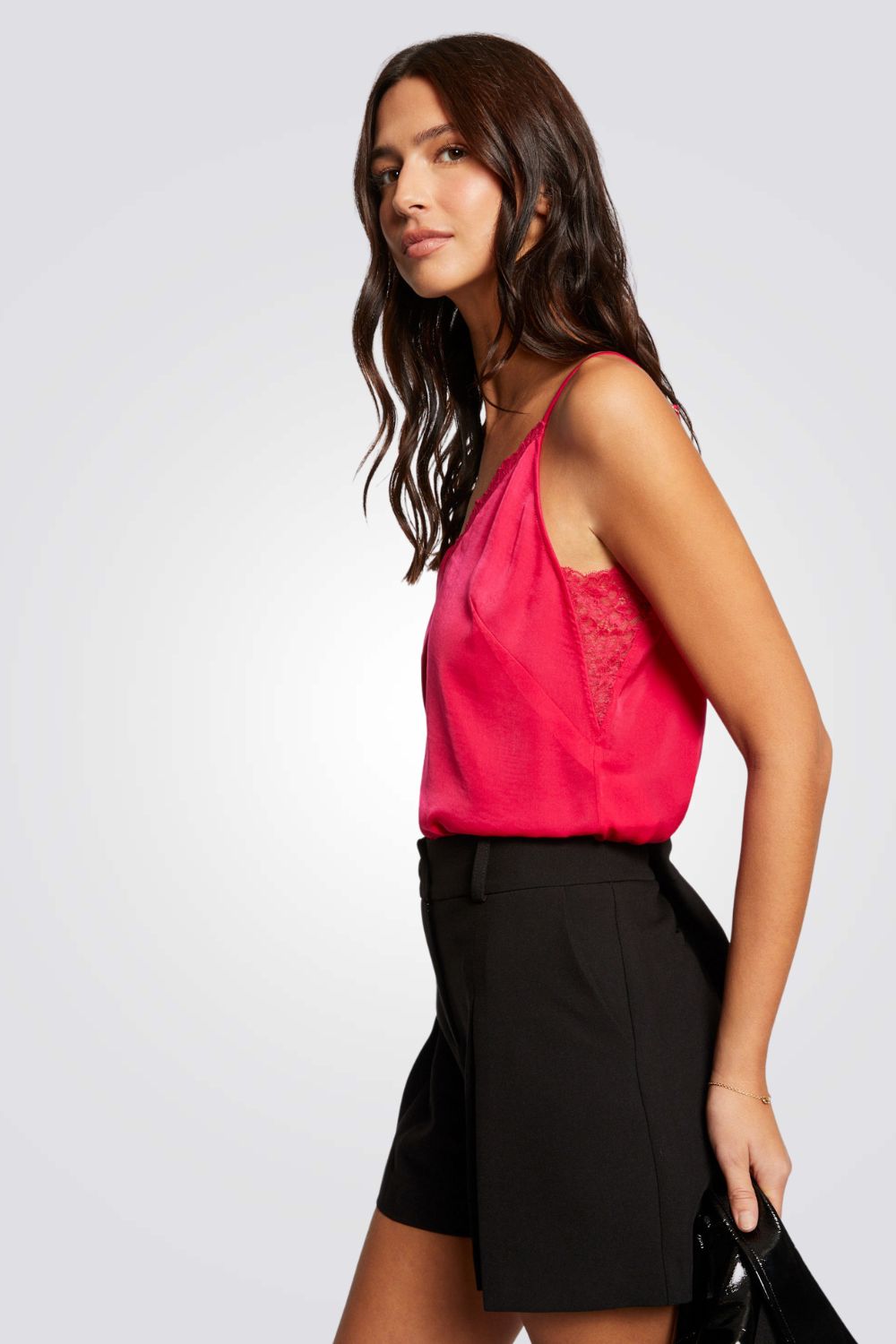 גופייה ורודה עם רצועות דקות ותחרה בצבע ורוד