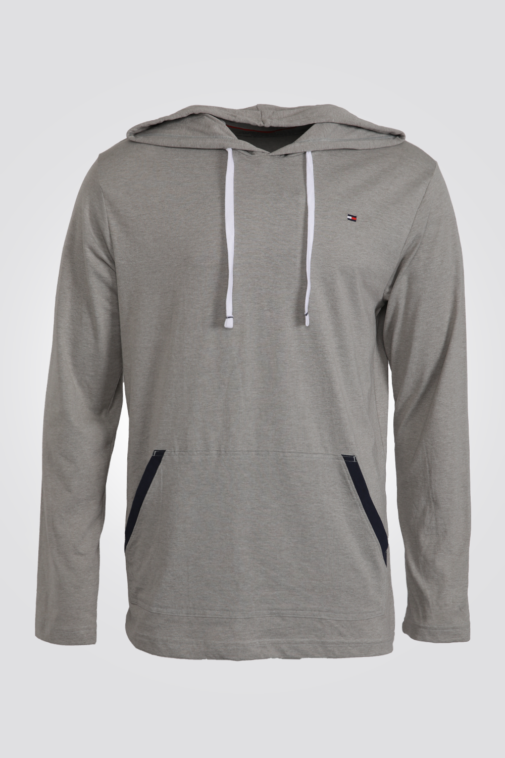 סווטשירט דק מבית המותג TOMMY HILFIGER עם שרוולים ארוכים וכובע קפוצ'ון, שרוכי קשירה ולוגו קטן בצד.
