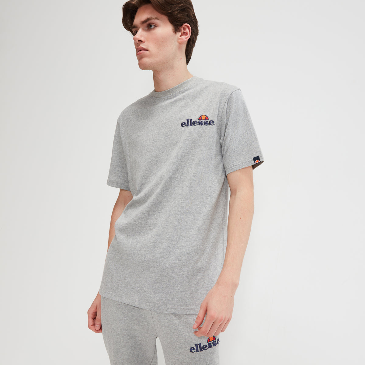 טישירט לגברים מבית המותג ELLESSE, בצבע אפור עם לוגו המותג, צווארון עגול ושרוולים קצרים.
