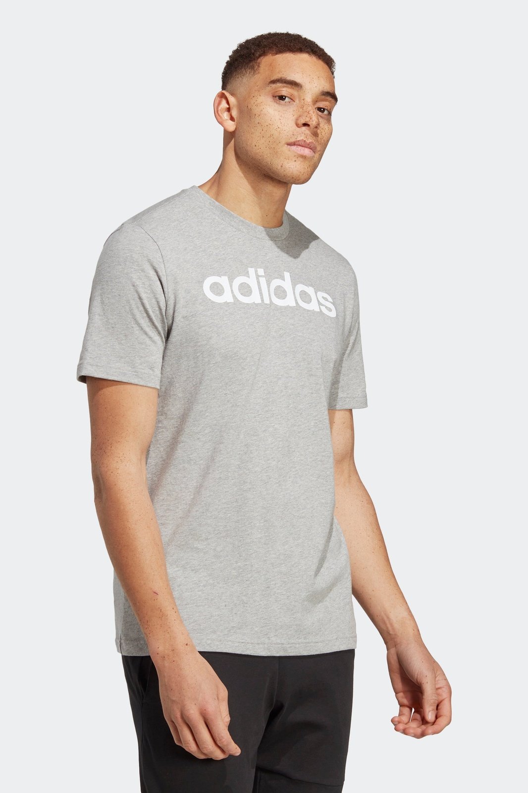 טישירט לגברים ESSENTIALS SINGLE JERSEY LINEAR EMBROIDERED בצבע אפור