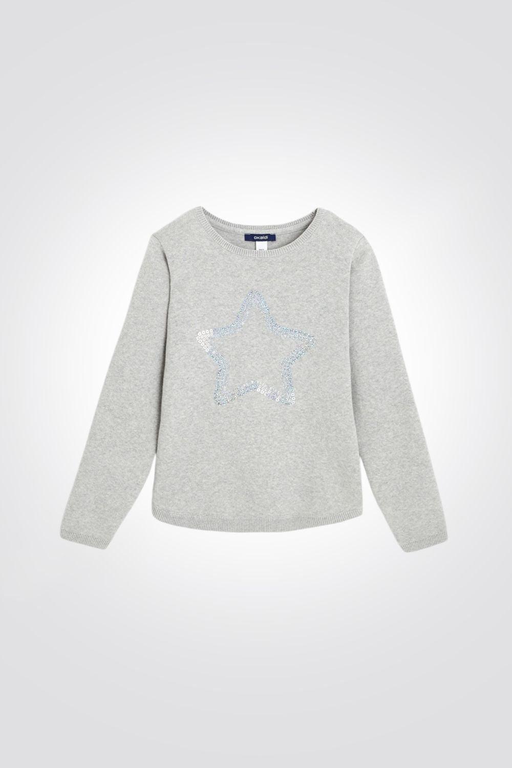 סווטשירט כוכב רקום בצבע אפור לילדות