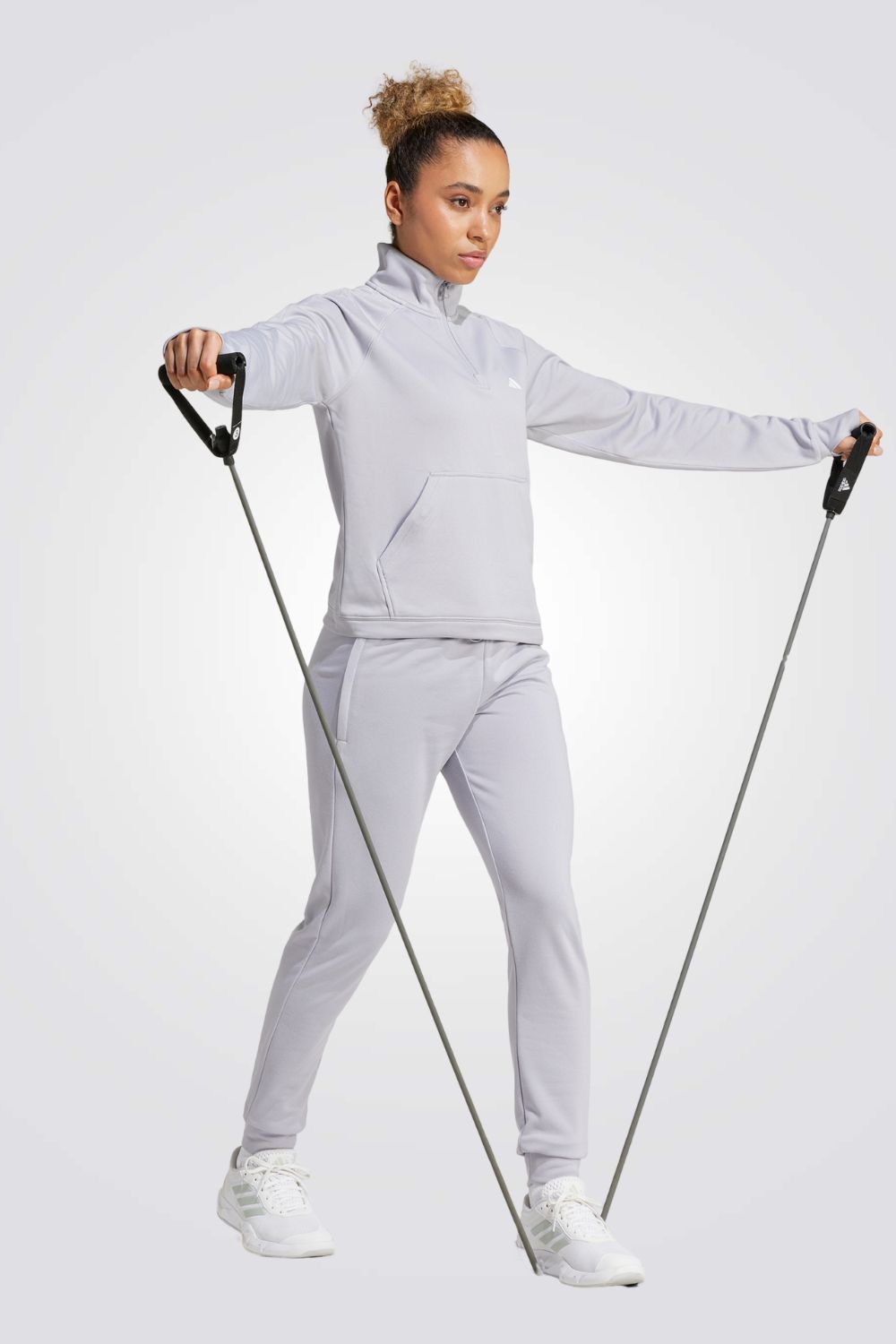 מכנסיים ארוכים לנשים מבית המותג ADIDAS בצבע אפור עם כיסים קדמיים ומותן אלסטית.