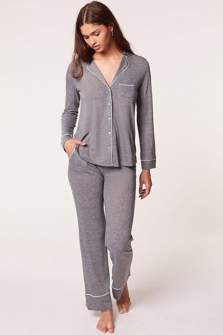 חולצת פיג'מה ארוכה WARM DAY אפור