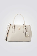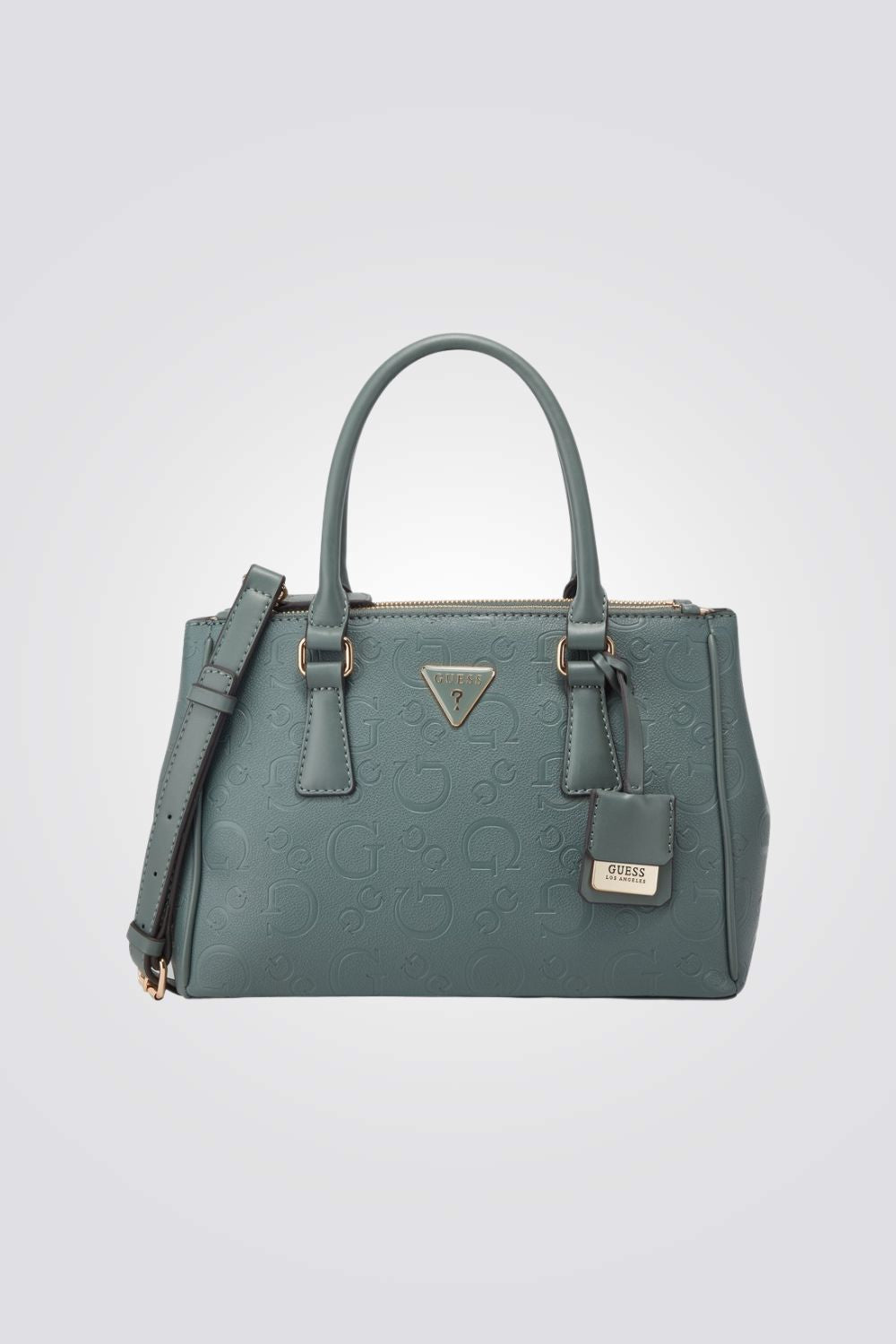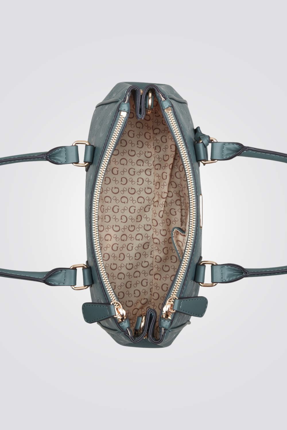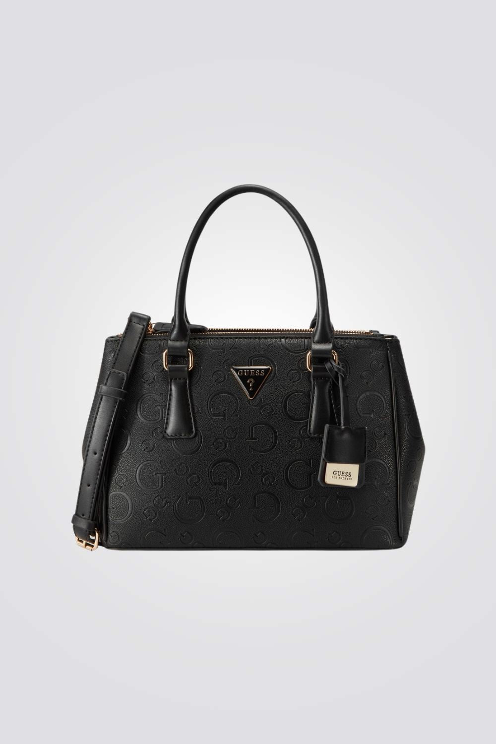 תיק יד לנשים מבית המותג GUESS , בעיצוב קלאסי ונקי, עם לוגו המותג ,תא אחד עם סגירת רוכסן ,שני ידיות אחיזה ועוד רצועת צד.