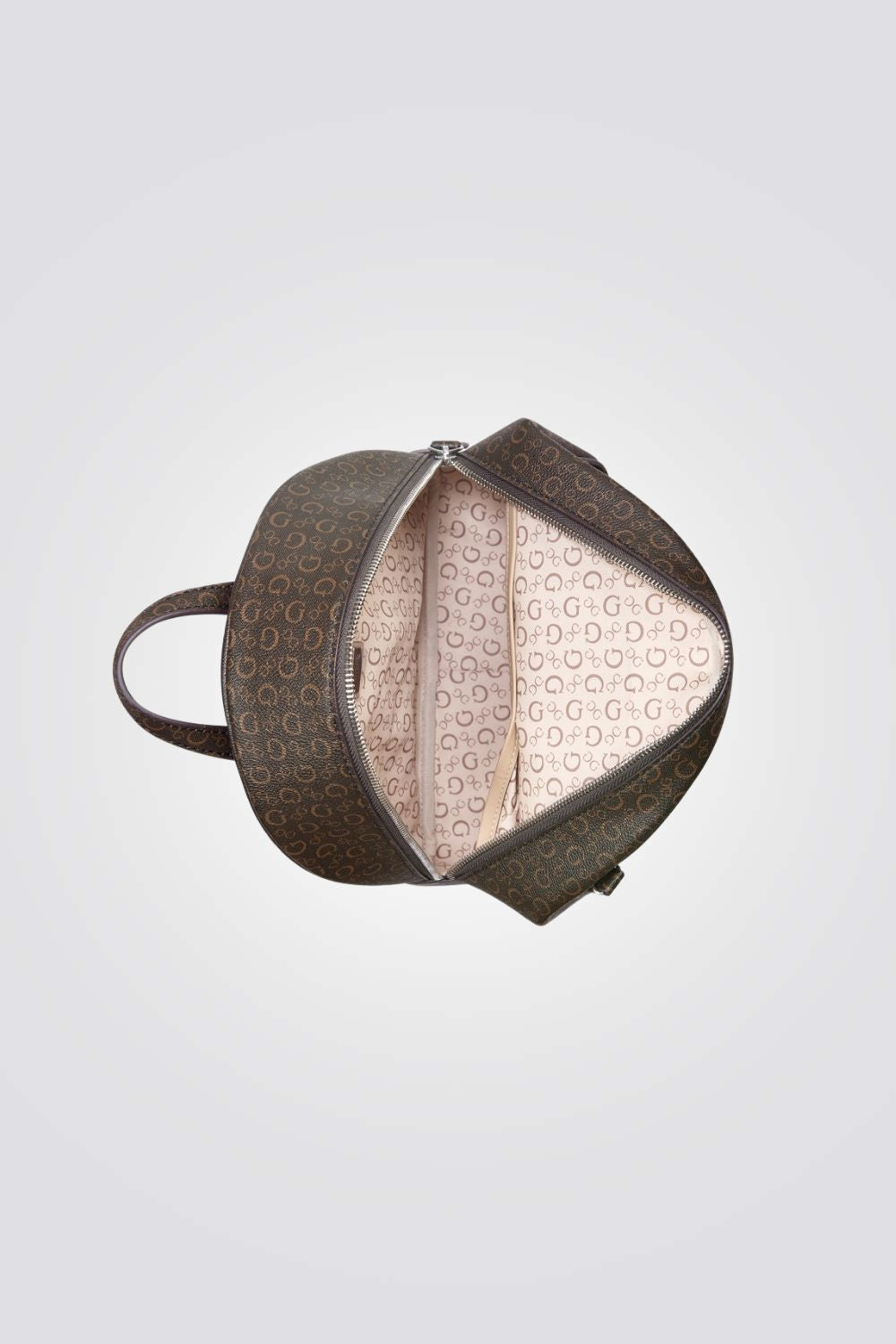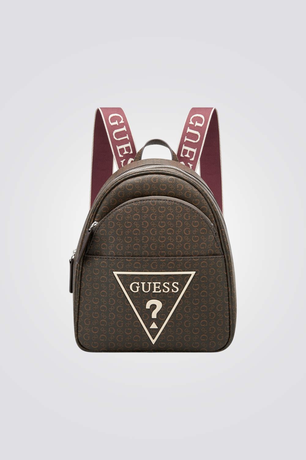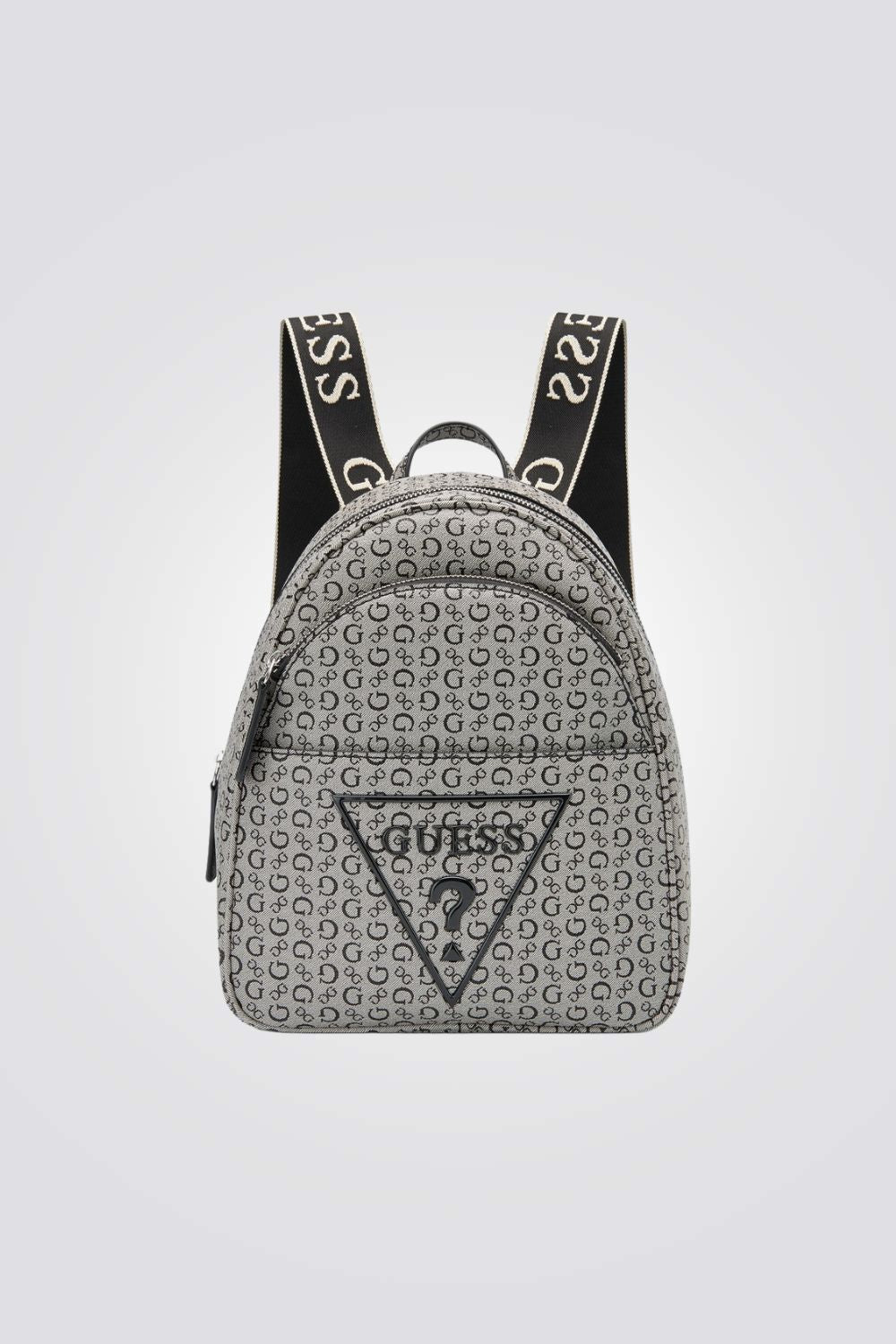 תיק גב לנשים מבית המותג GUESS , בעיצוב קלאסי ונקי, עם לוגו המותג ,תא אחד עם סגירת רוכסן ושני רצועות גב.