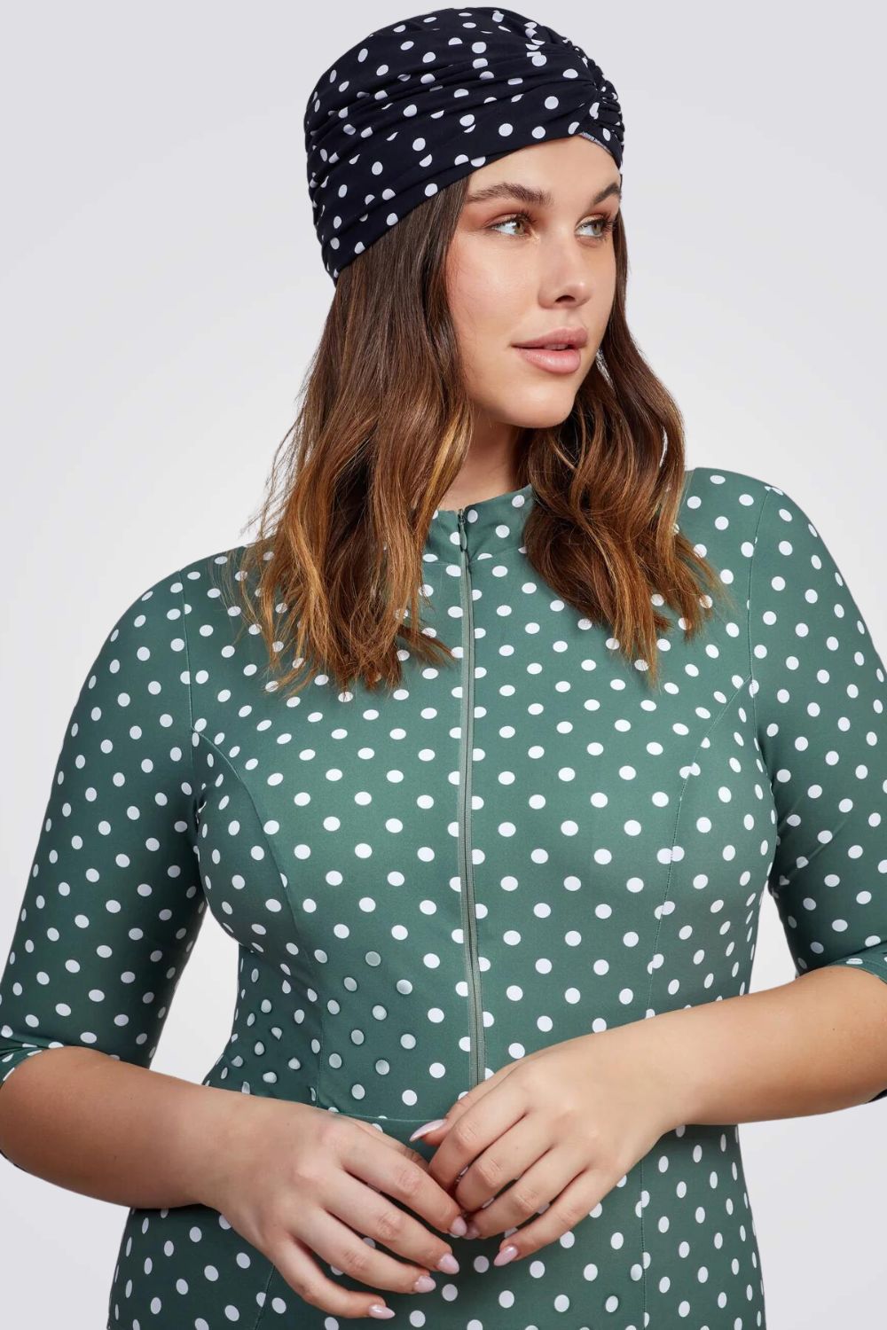 טורבן מבית המותג GOTTEX, טורבן לייקרה נקודות שחור לבן עם רצועות הניתנות לקשירה במגוון סגנונות