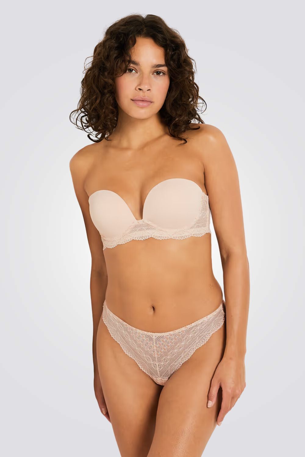 תחתוני טנגה לנשים מבית המותג הצרפתי ETAM בצבע ורוד בהיר בעלי גומי בקו המותניים .