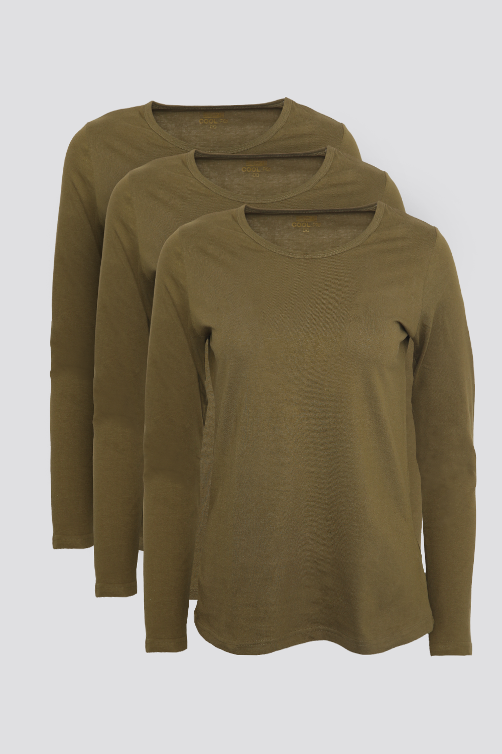 מארז שלישיית גופיות נשים מבית המותג COOL 32 בעלות שרוולים ארוכים, צואוורון עגול ומתאימה לשימוש יום יומי.