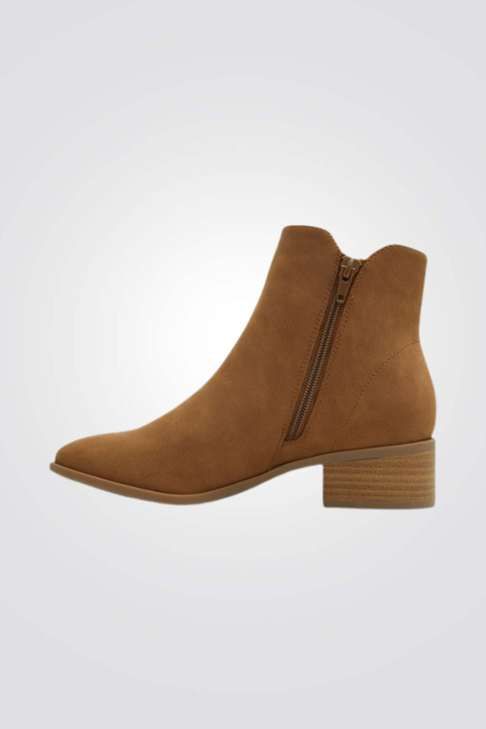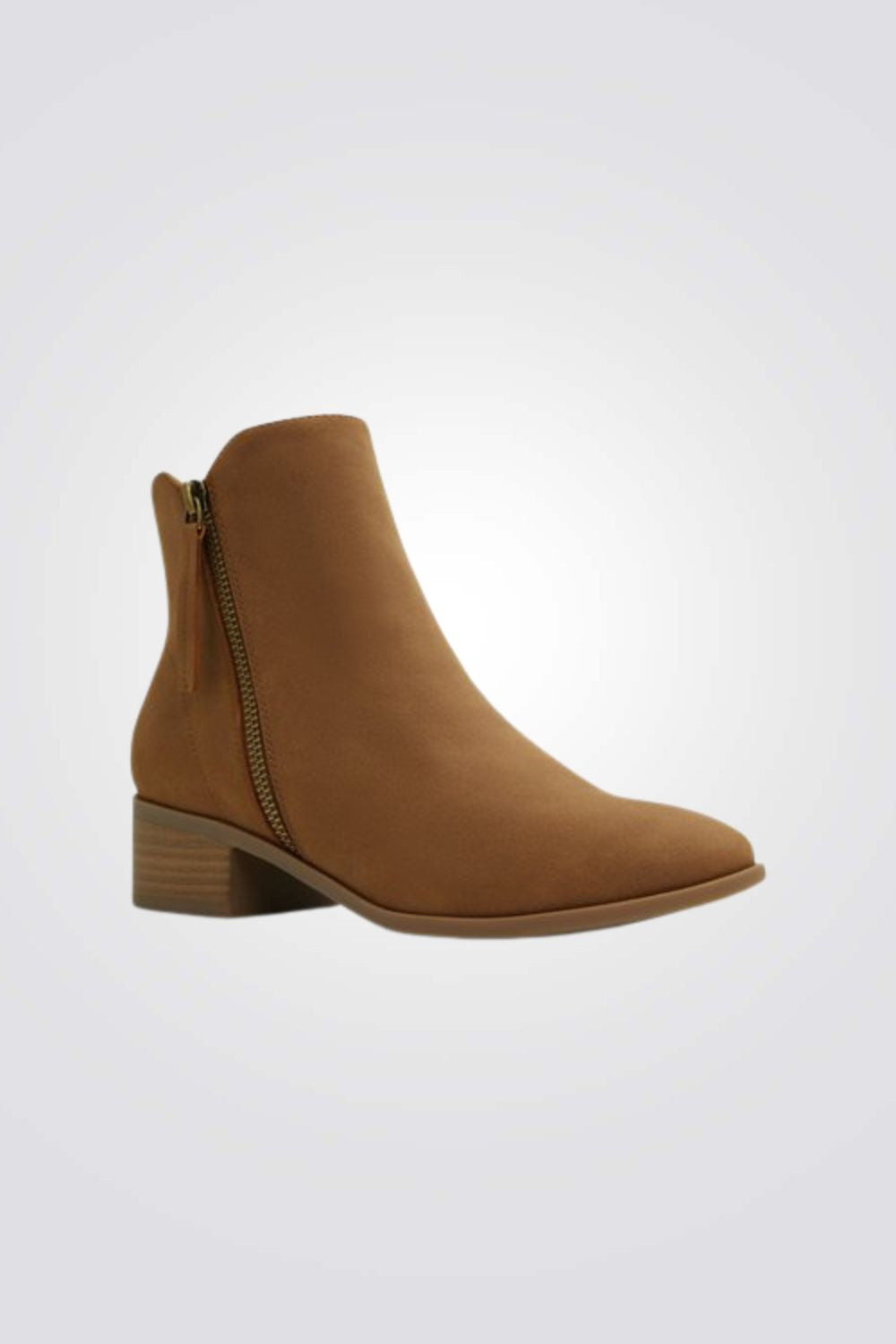 מגפונים דמוי עור מבית המותג CALL IT SPRING עם חרטום בצורת שקד, רוכסן צדדי עקב בלוק נמוך. עשויים מ-100% חומרים טבעוניים ומדרסים נוחים בטכנולגויית ™B.E.D Foam.