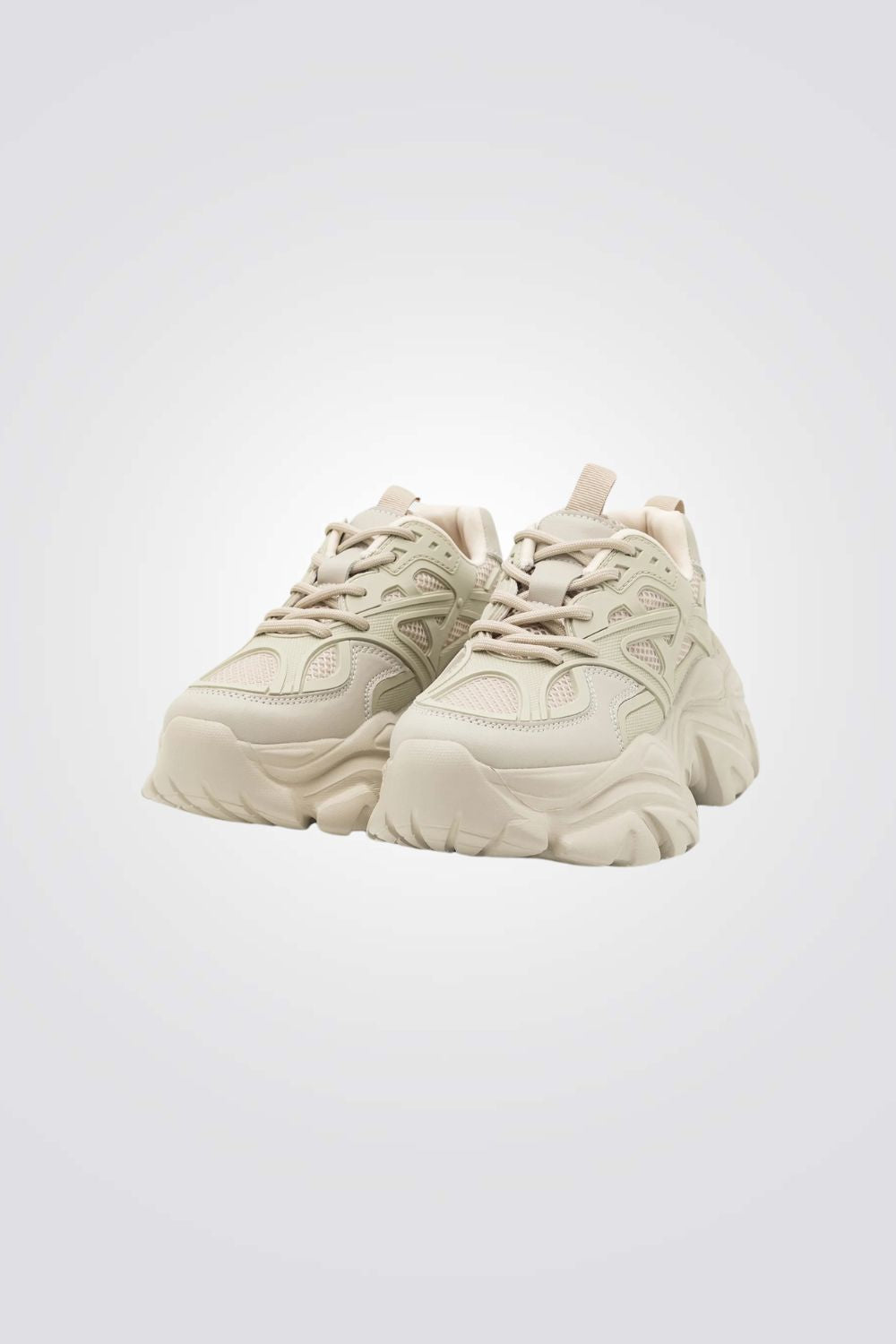 נעלי סניקרס מבית המותג CALL IT SPRING עם שרוכי קשירה וסוליית צ'אנקי גבוהה במיוחד, אופנתיות ונוחות ומתאימות להליכות מרובות.