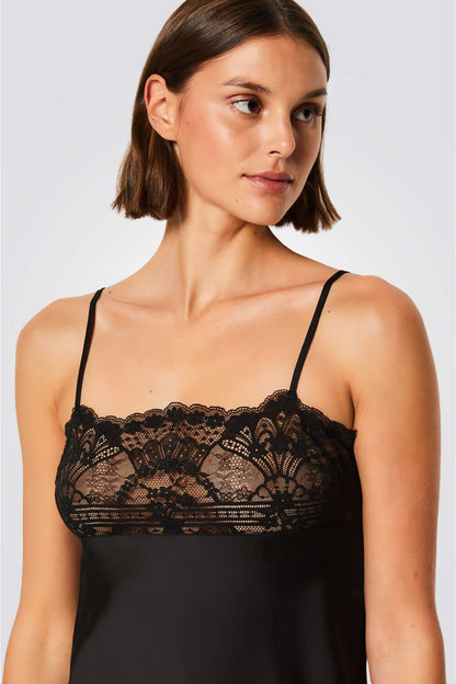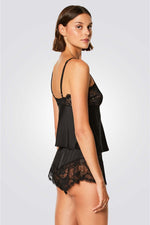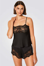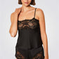 גופיית סאטן LA CHAMADE עם תחרה בצבע שחור