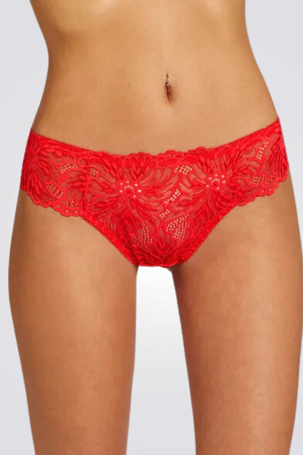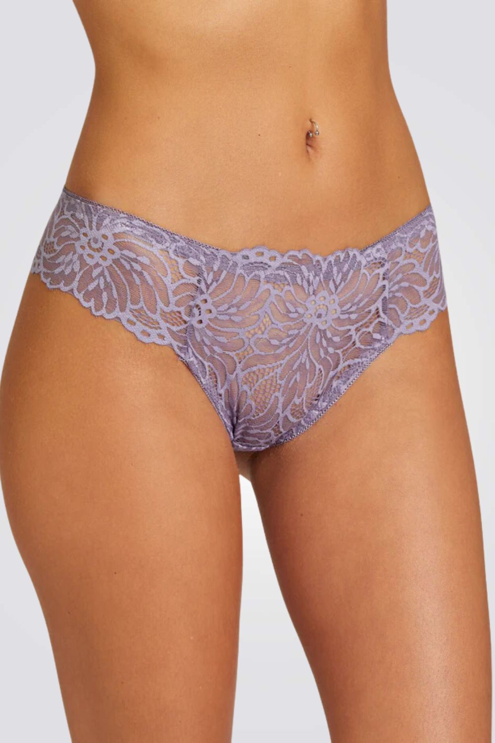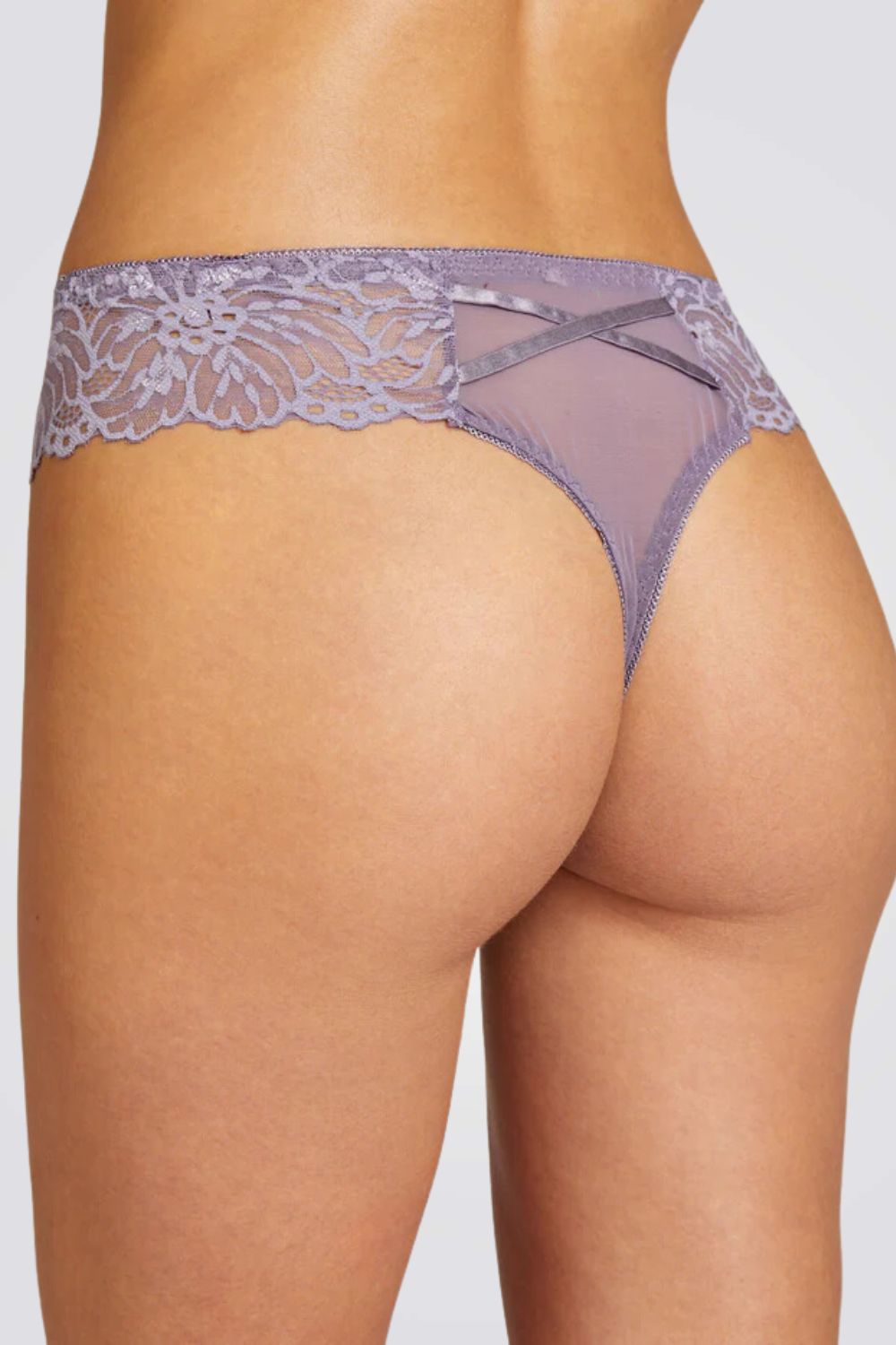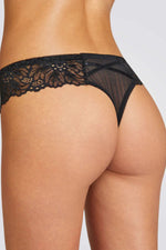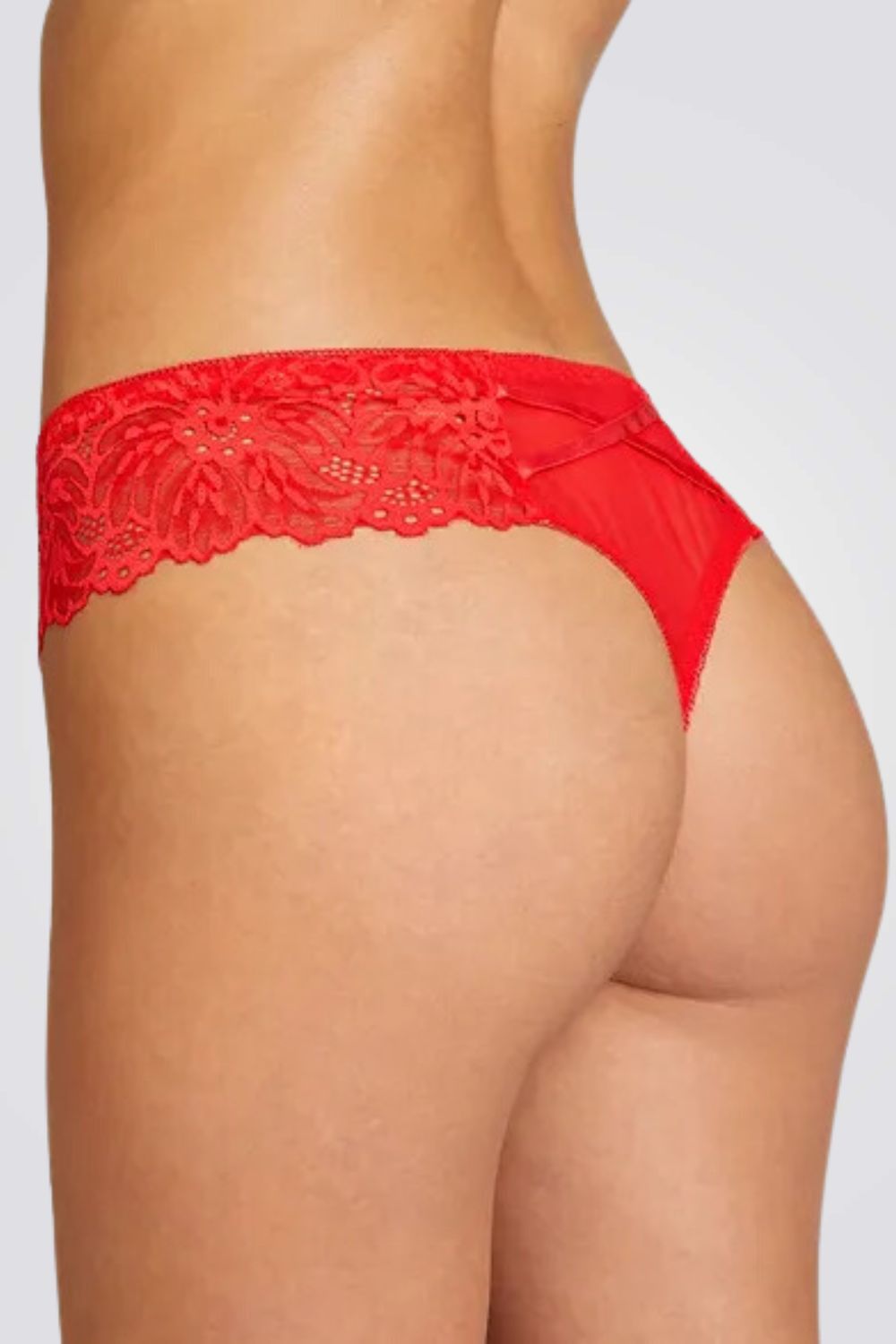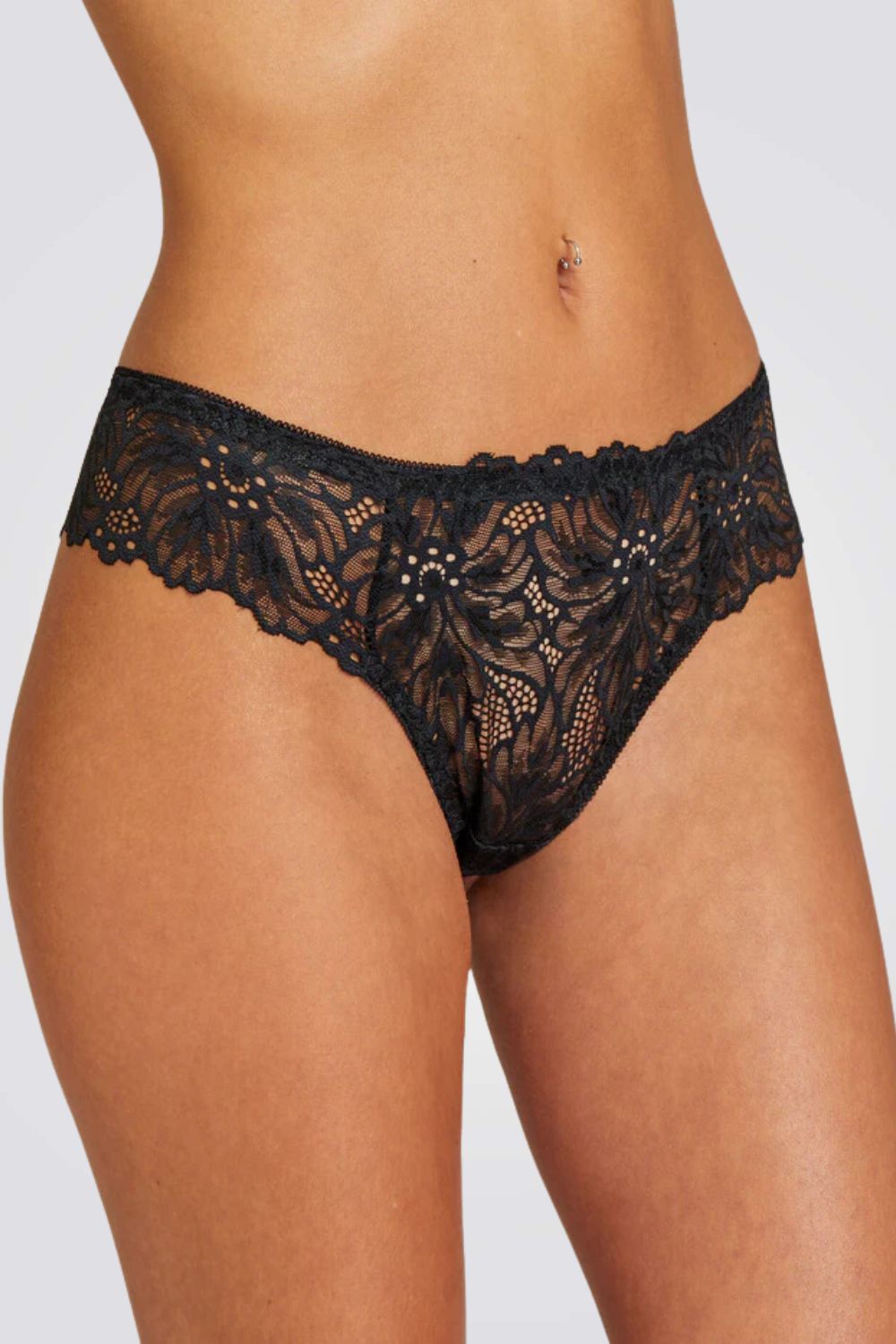תחתוני חוטיני מבית המותג BONITA DE MAS, העשויים תחרה פרחונית עדינה עם שרוכים דקורטיבים בחלקו האחורי.