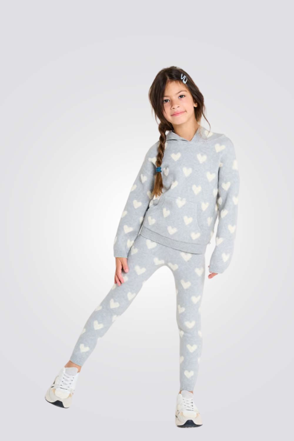 מכנסי סריג בצבע אפור עם הדפס לבבות