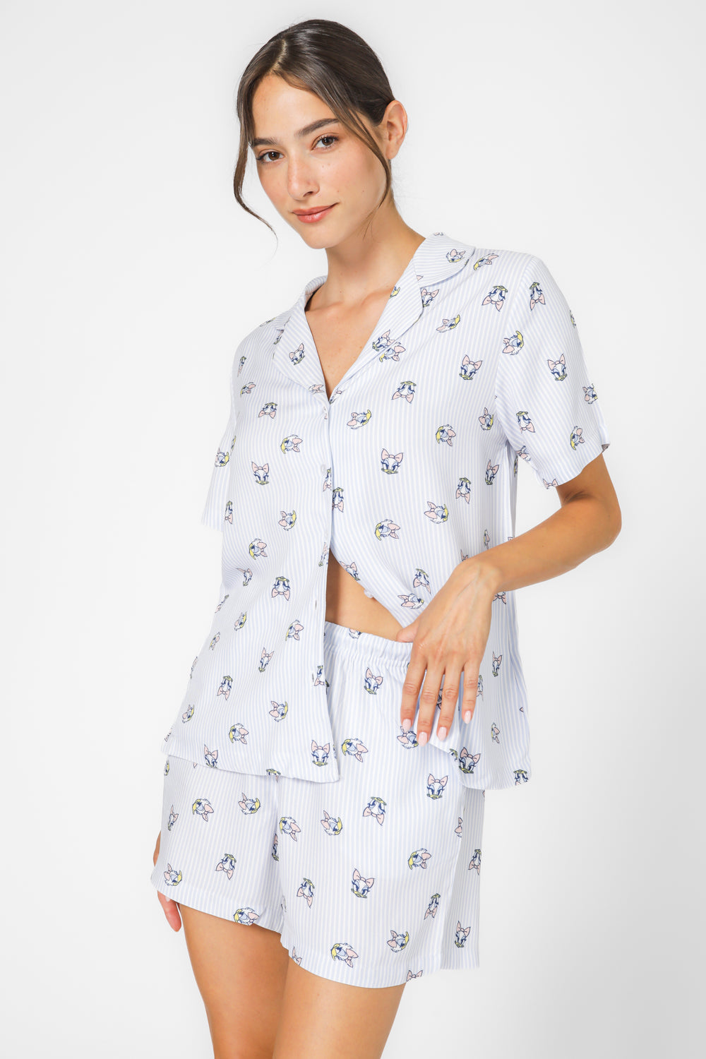 סט פיג’מה מכופתרת מבד אריג DAISY