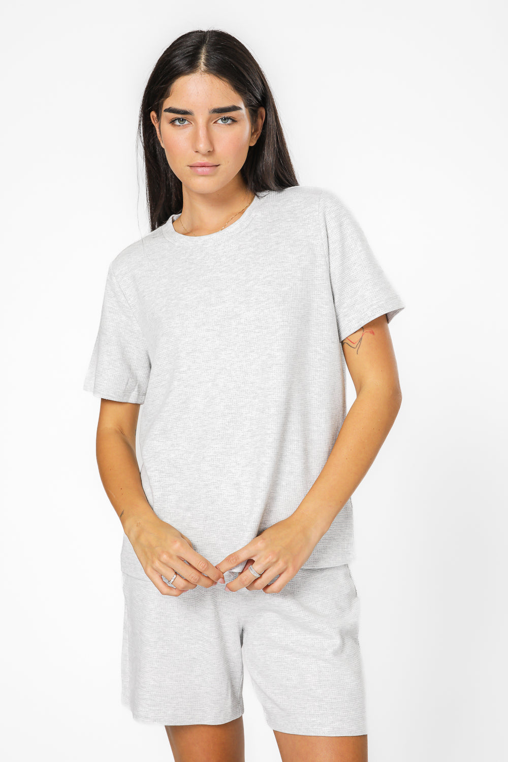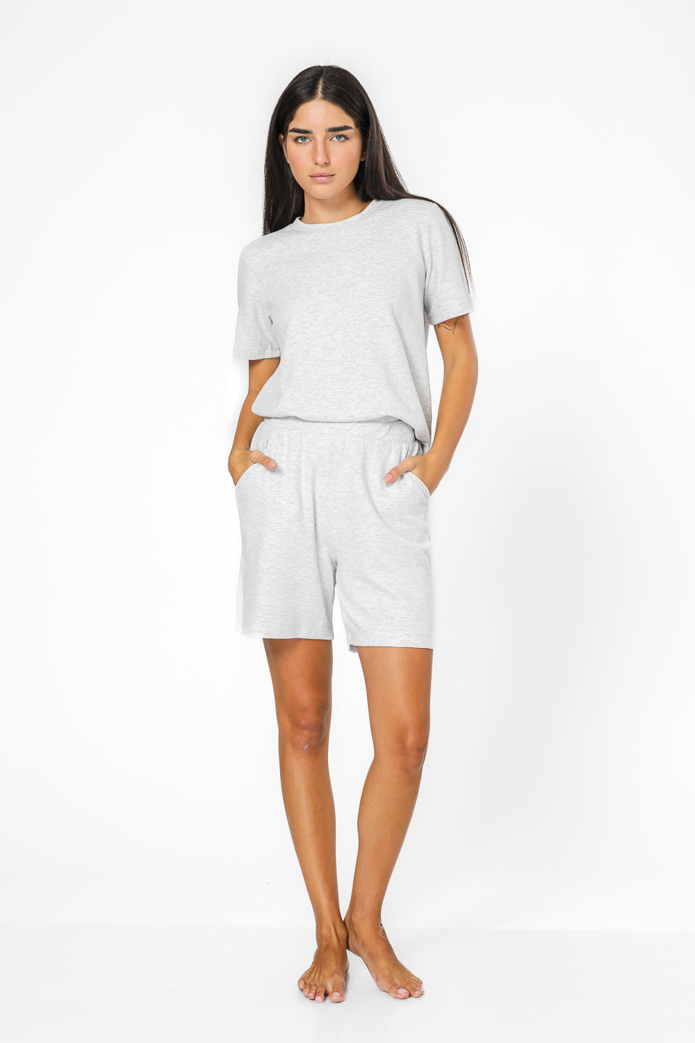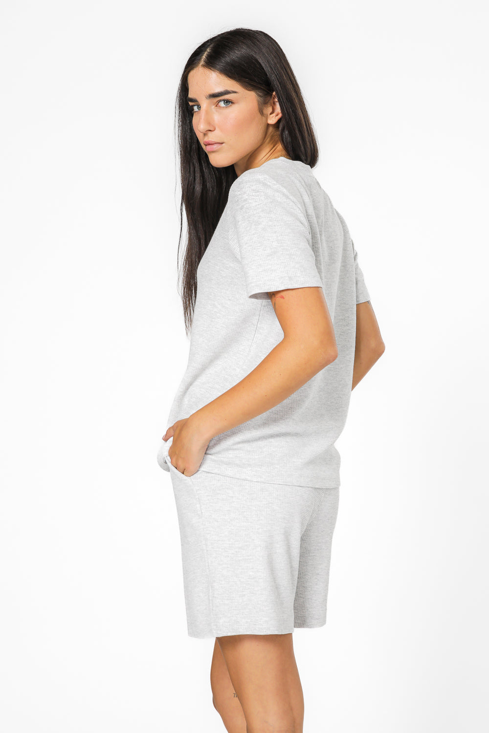 סט פיג'מה קצרה WAFFEL בצבע אפור בהיר