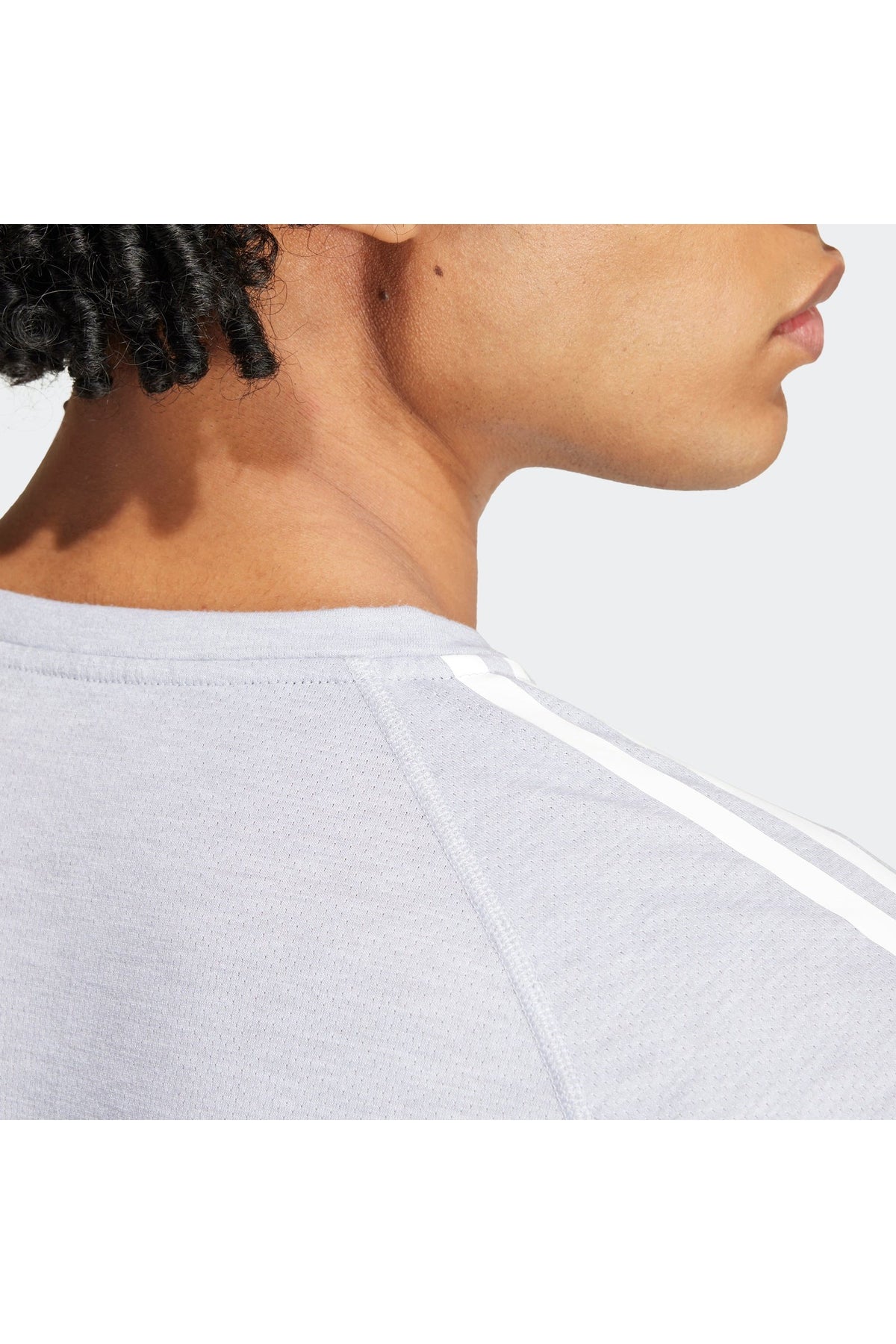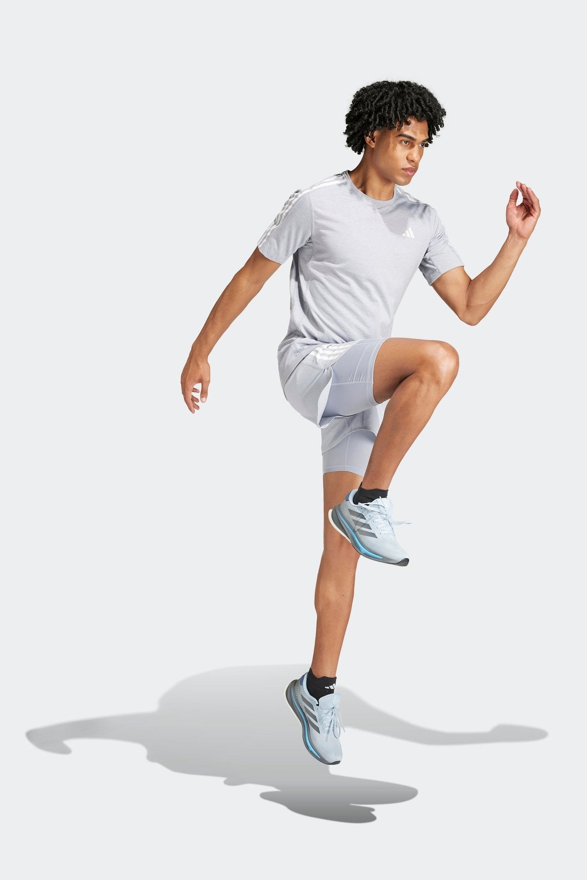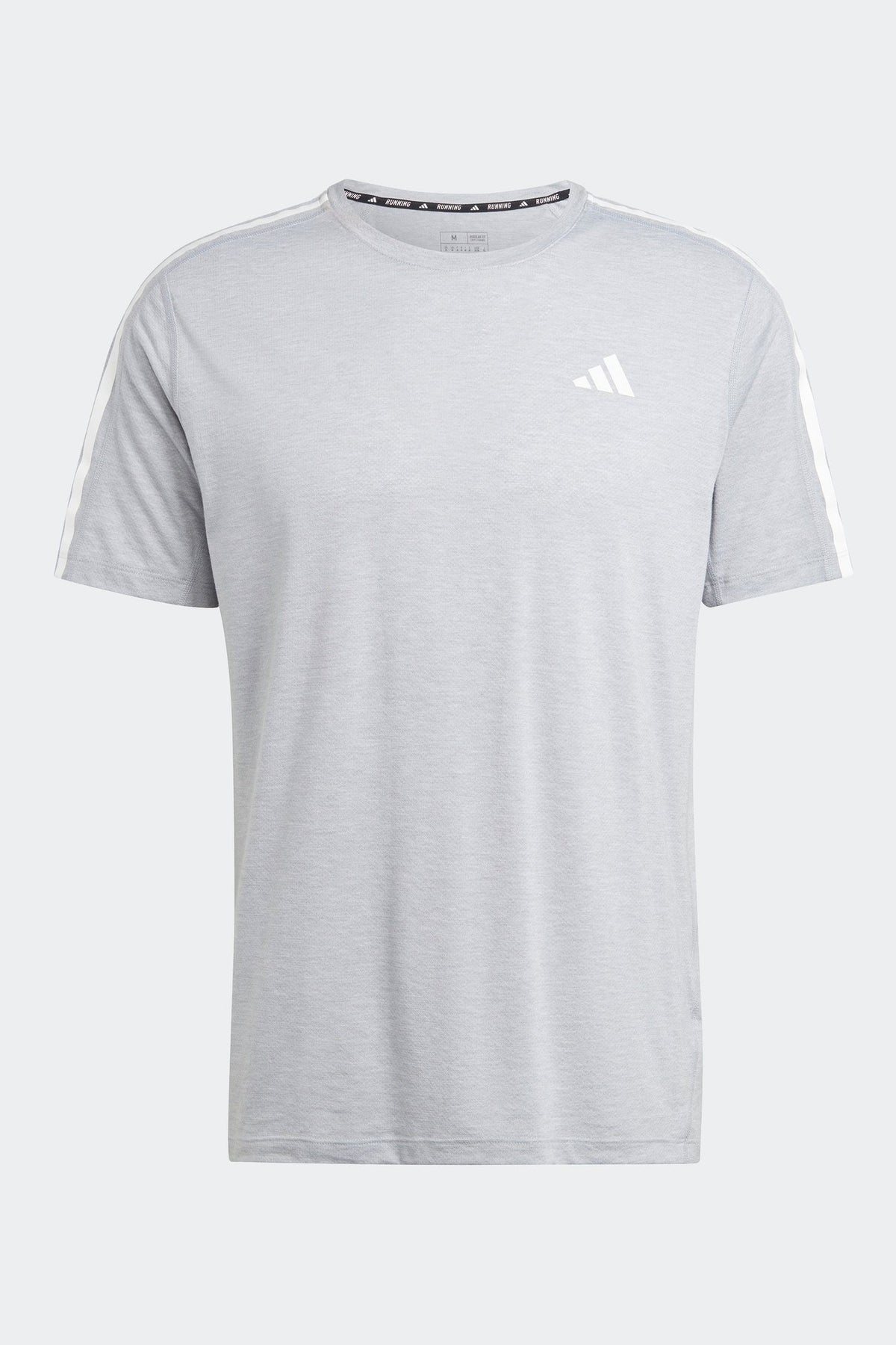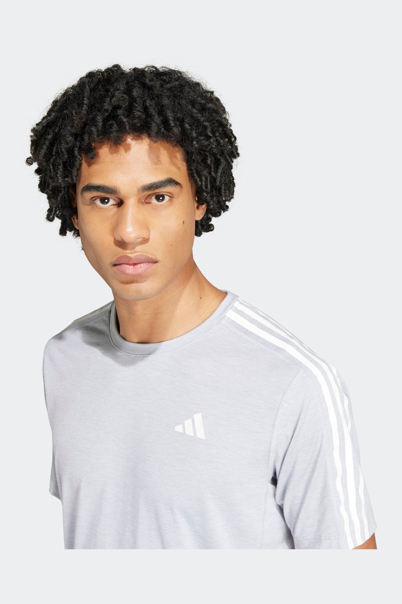 טישירט לגברים OWN THE RUN 3-STRIPES בצבע אפור בהיר
