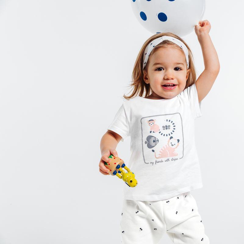 טישירט שרוולים קצרים לתינוקות. עם הדפס גדול באפקט רקמה. צווארון עגול וכפתורים בגב להלבשה נוחה. הרכב בד: 100% כותנה