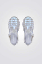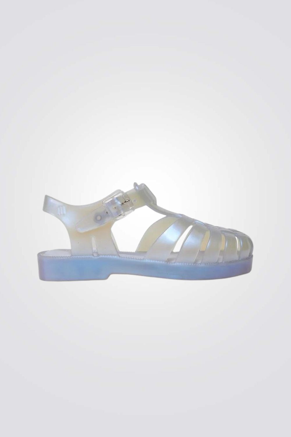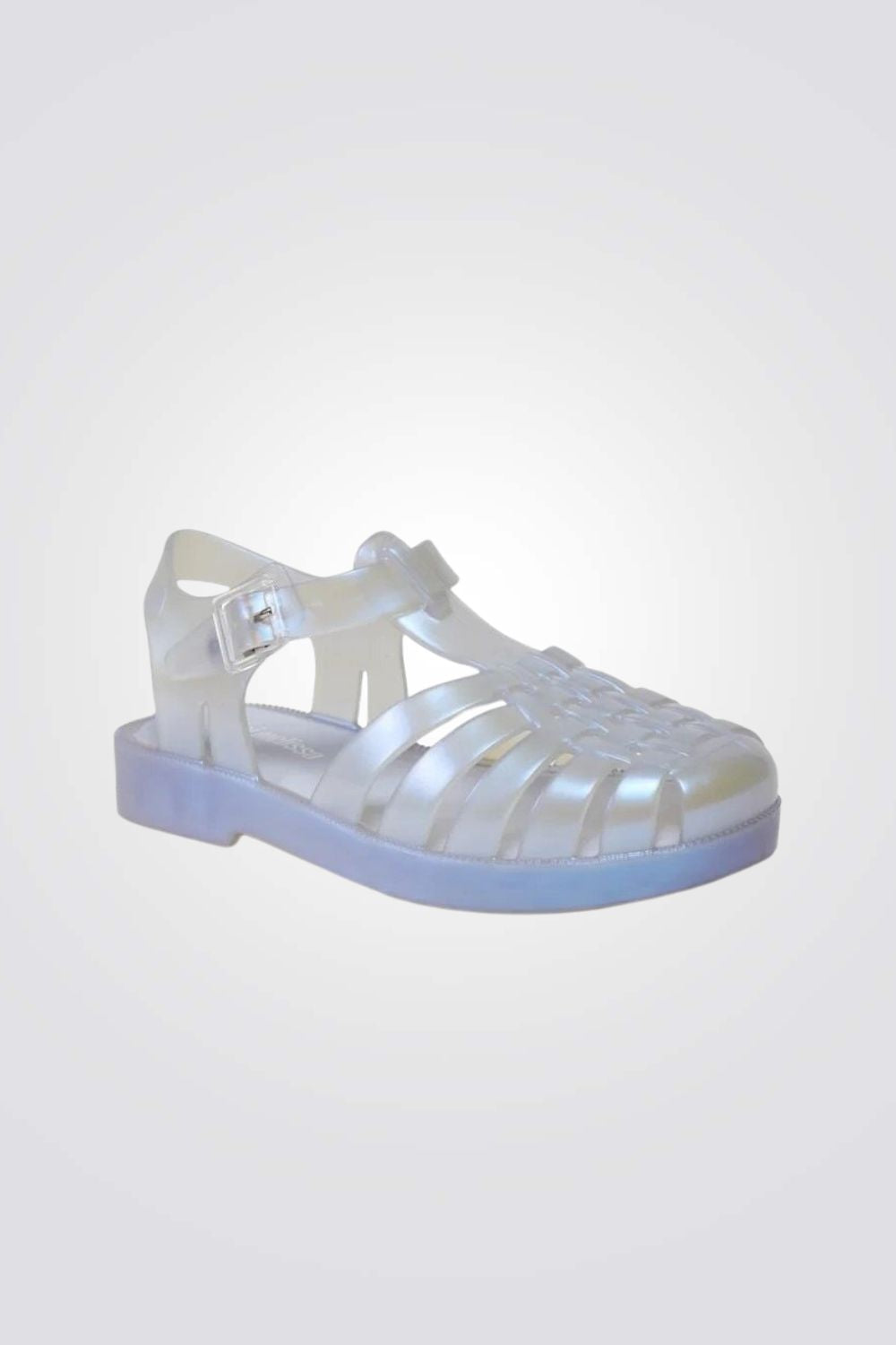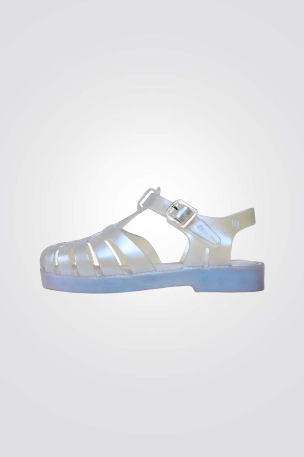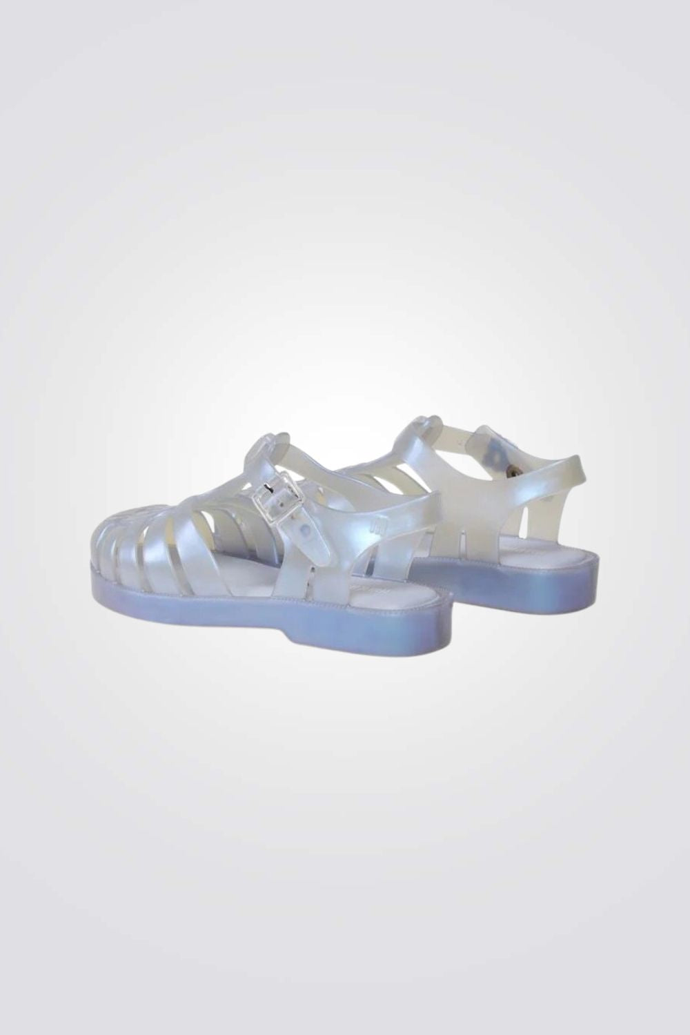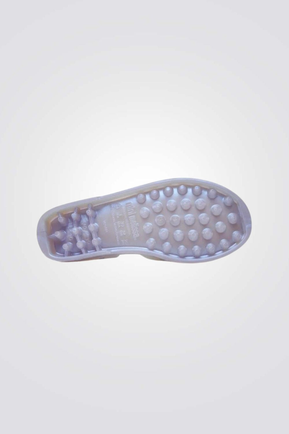 סנדלים מבית המותג MELLISA, במראה שקוף עם גווני סגול לילך, בעלי מדרס פנימי רך במיוחד שעוטף את הרגל בנוחות בלתי מתפשרת. סולייה חיצונית עמידה שמספקת אחיזה מלאה בקרקע. רצועה אחורית בסגירת אבזם להתאמה מושלמת.