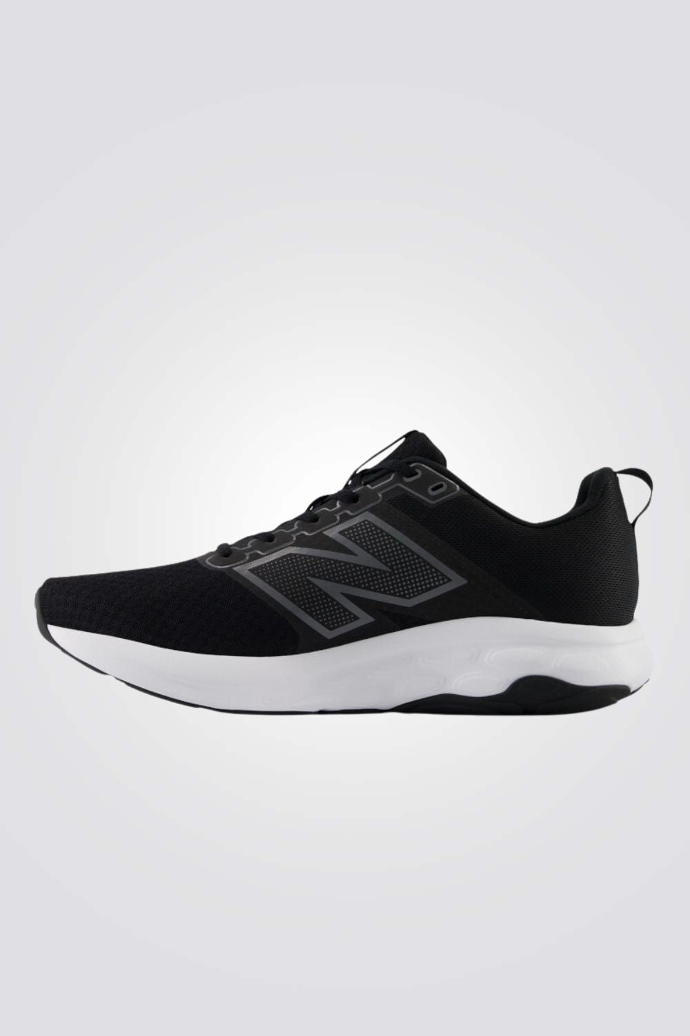 נעלי ריצה מבית המותג NEW BALANCS לגברים בצבע שחור, בעלות סוליית ביניים רכה ומרופדת, גפה רשת לאוורור, שרוכים לקשירה וסמל המותג בצידי הנעל.