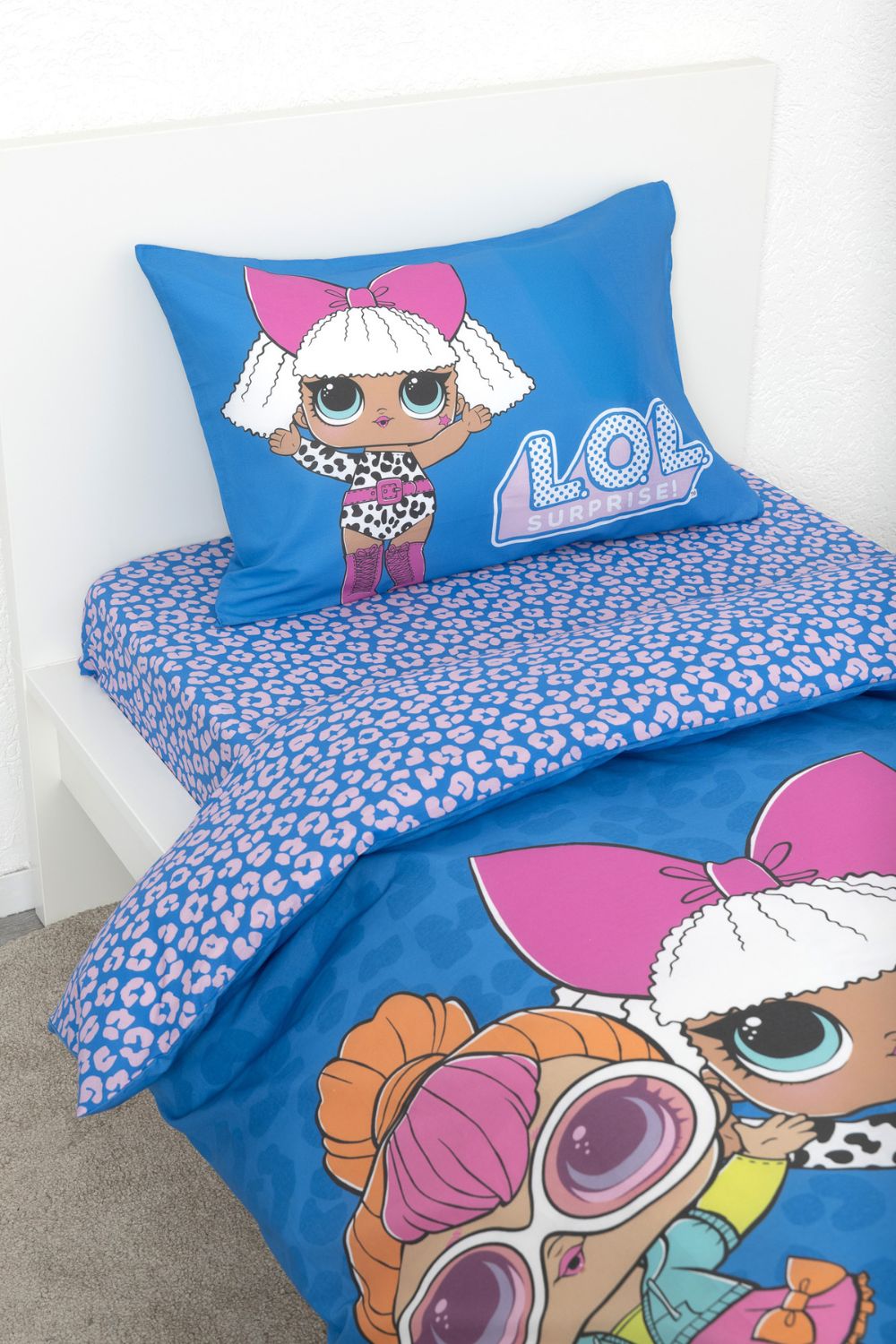 סט מצעים מיטה וחצי לילדים ונוער מבית המותג RED CHILLI, דגם LOL PARTY, מבד כותנה בצבעי כחול וורוד.