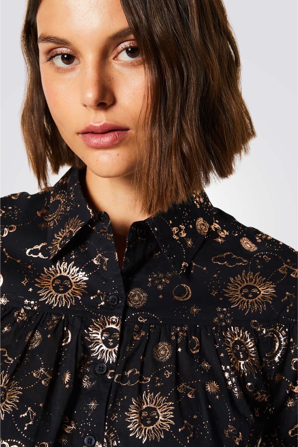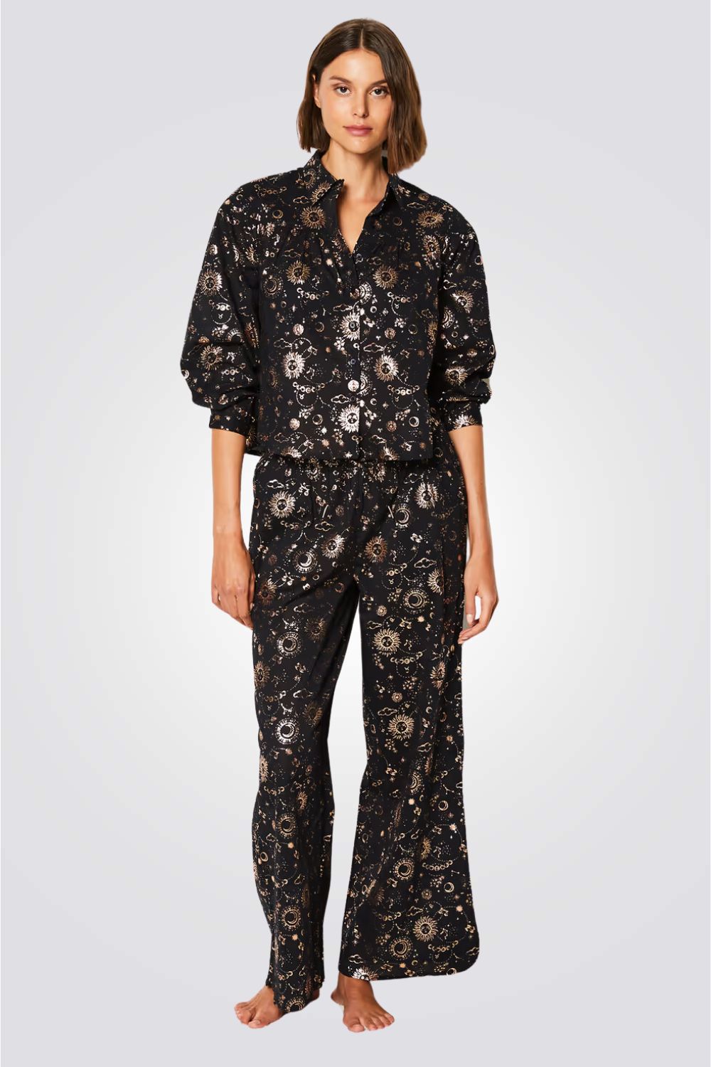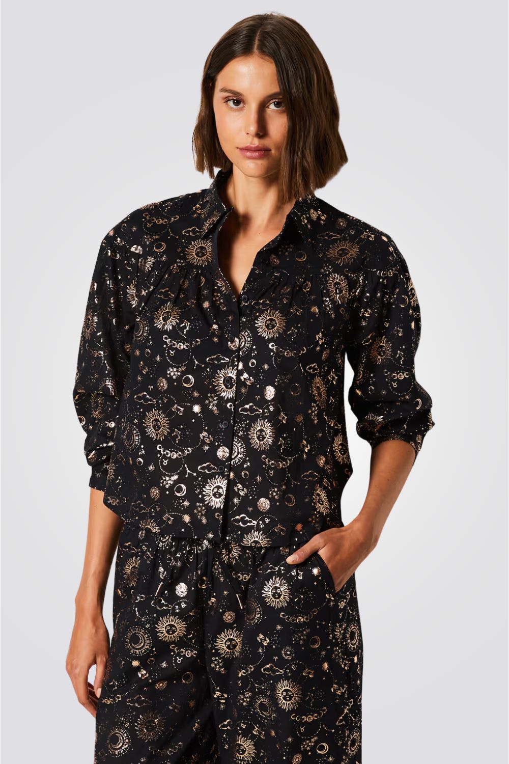 חולצת פיג'מה מכופתרת MAISSA בהדפס זהוב