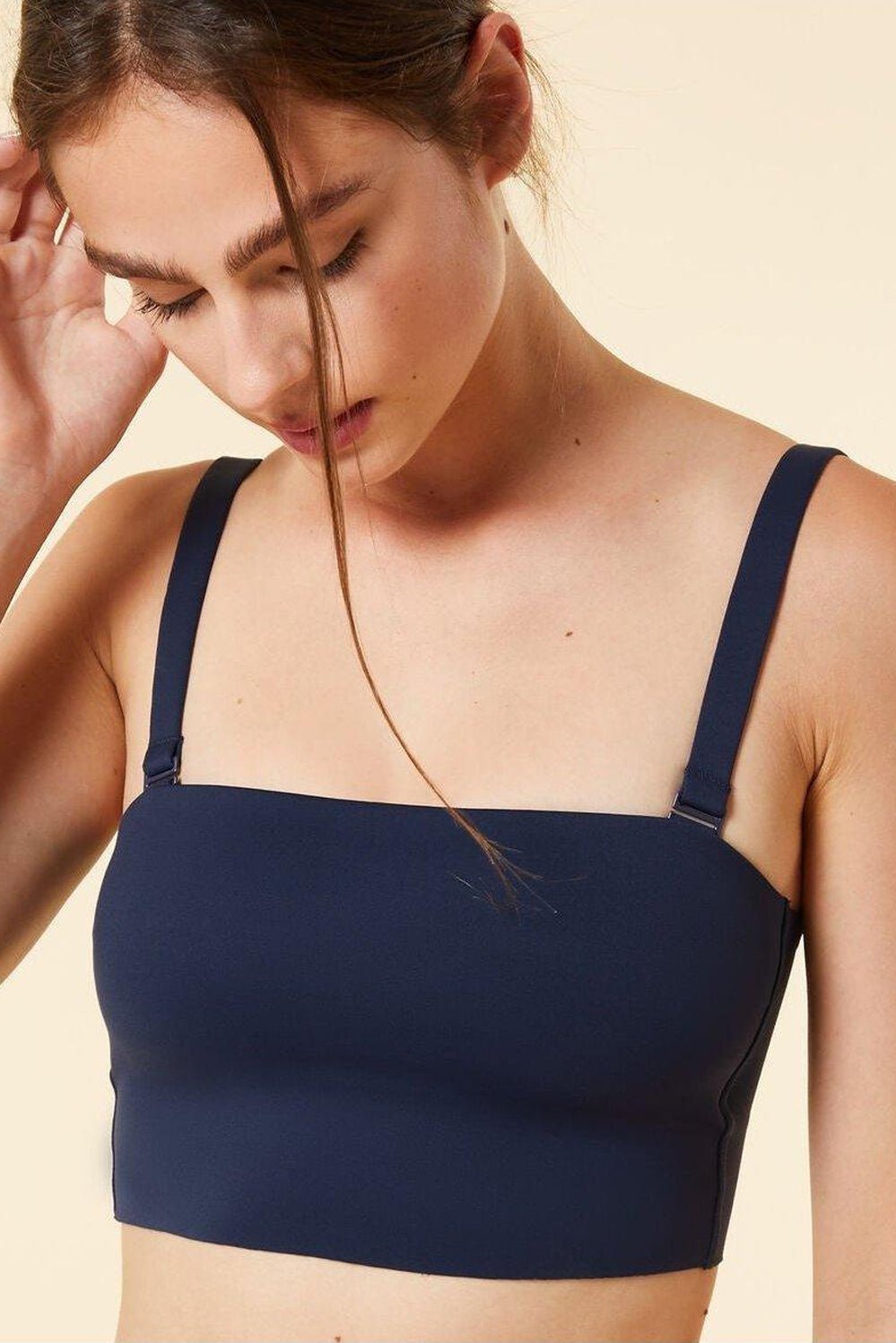 טופ סטרפלס מבית המותג הצרפתי ETAM עשוי בד דק, קליל ונושם, ללא ריפוד ולא ברזלים, עם כתפיות מתכווננות הניתנות להסרה. יכול ללוות אותך בנוחות מקסימלית לאורך כל היום במגוון שימושים, כחזייה או כטופ, מושלם ללבישה תחת שמלה למראה חלק ומעוצב.