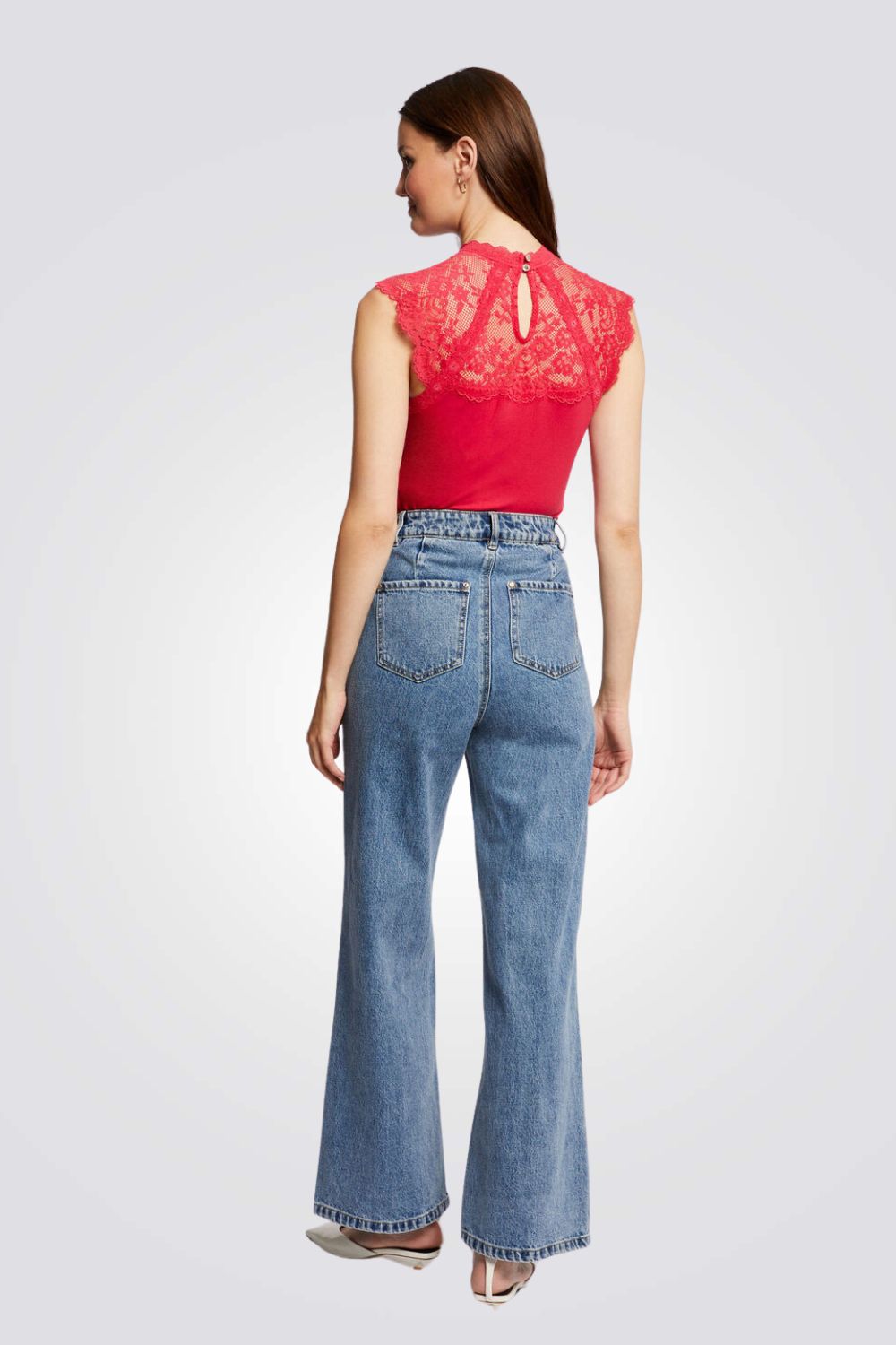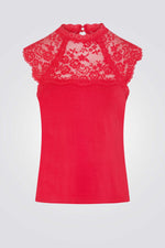 סגירת טיפה עם כפתורים בגב, תחרה עם מכפלת סקאלופ על קו הצוואר, הכתפיים והגב.