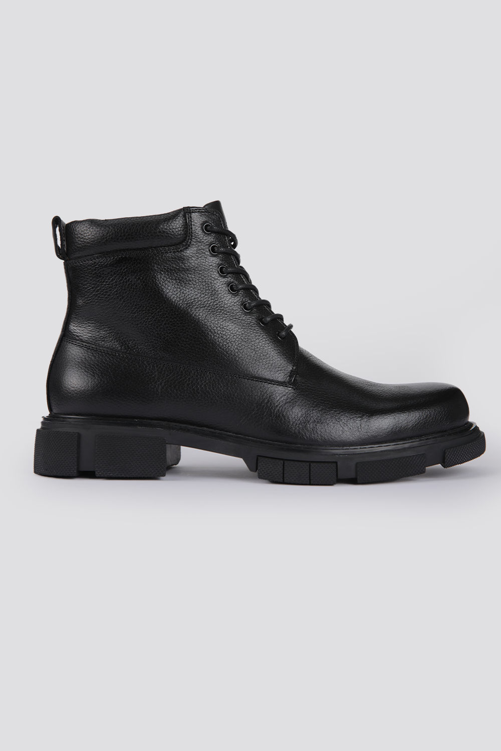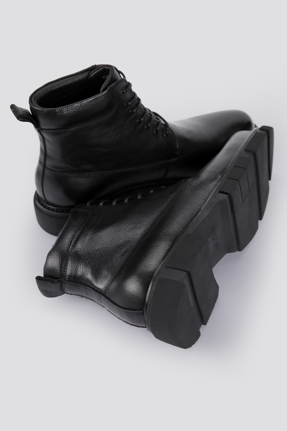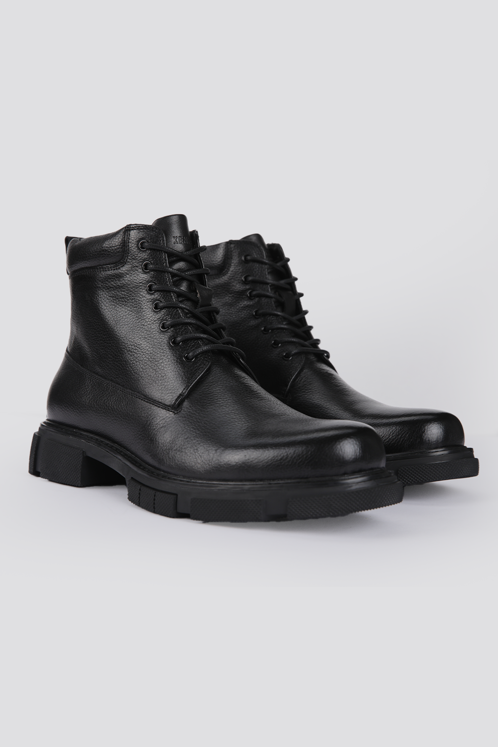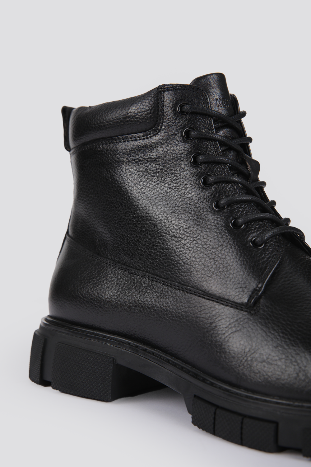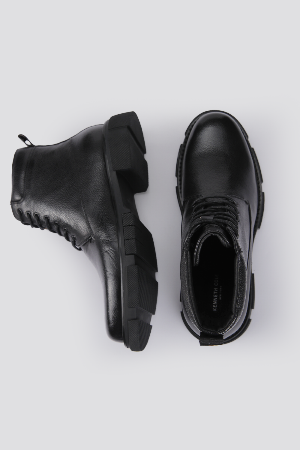 מגפוני עור מבית המותג KENNETH COLE בצבע שחור בסגנון קלאסי עם שרוכים דקים וסוליית טרקטור לנוחות מקסימלית.