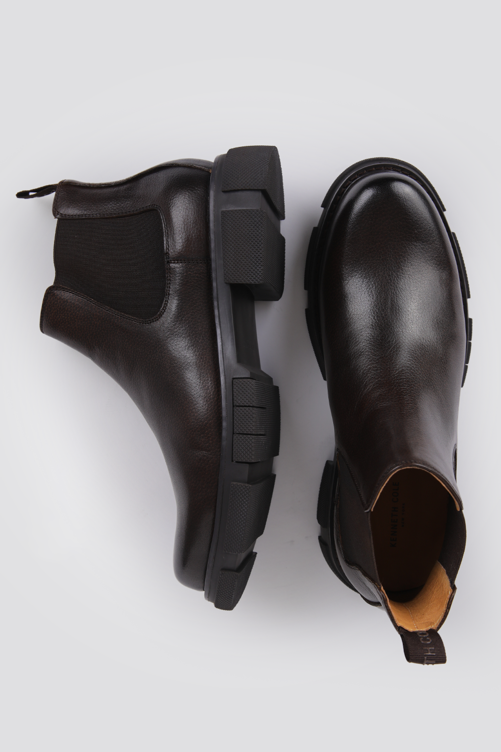 מגפוני עור מבית המותג KENNETH COLE עם בד גומי בצידי הנעל לנעילה קלה וסוליית טרקטור, נוחים ומתאימים להליכה מרובה.