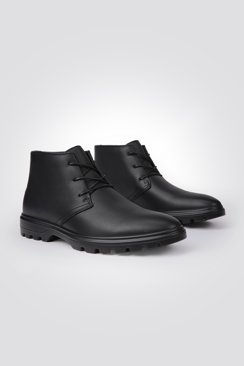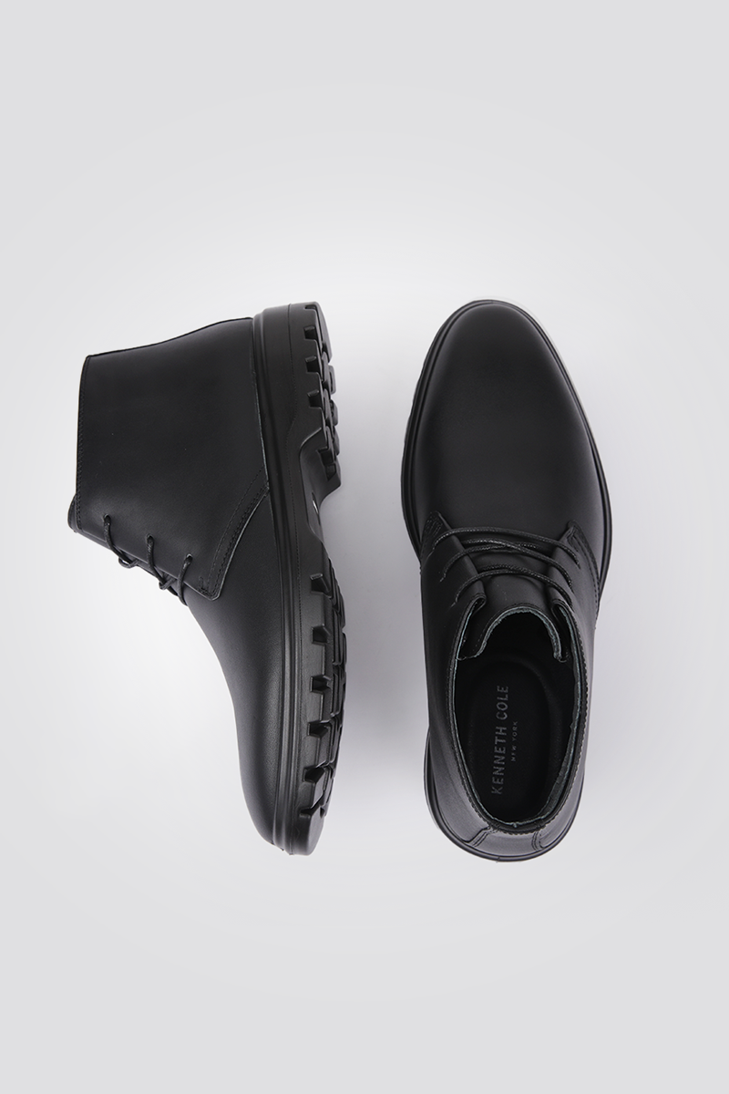 מגפוני עור מבית המותג KENNETH COLE בצבע שחור, בעיצוב קלאסי עם שרוכים וסוליה עבה לנוחות מקסימלית.