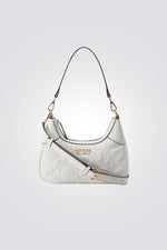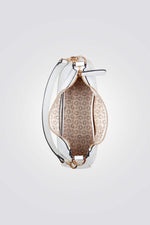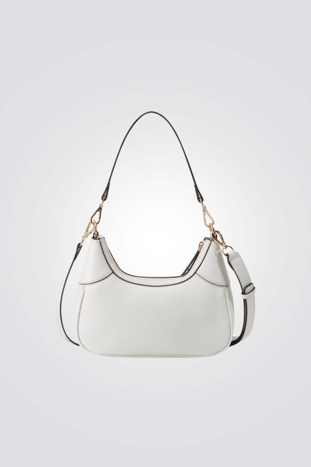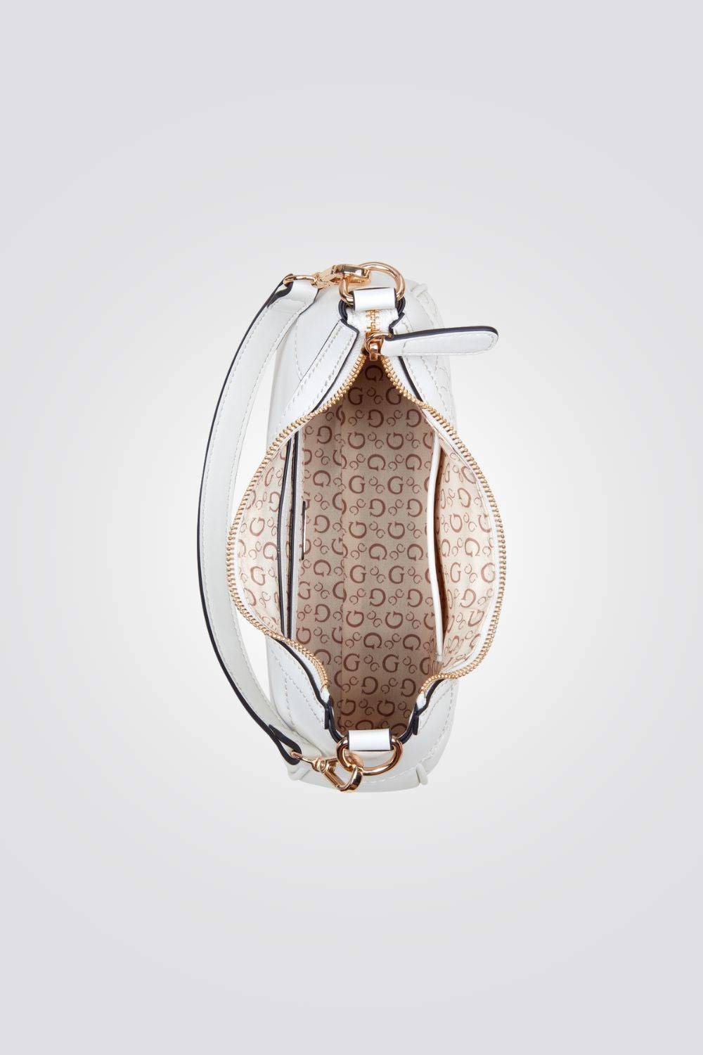 תיק צד לנשים מבית המותג GUESS, בעיצוב קלאסי ,תא אחד עם סגירת רוכסן ורצועת יד.