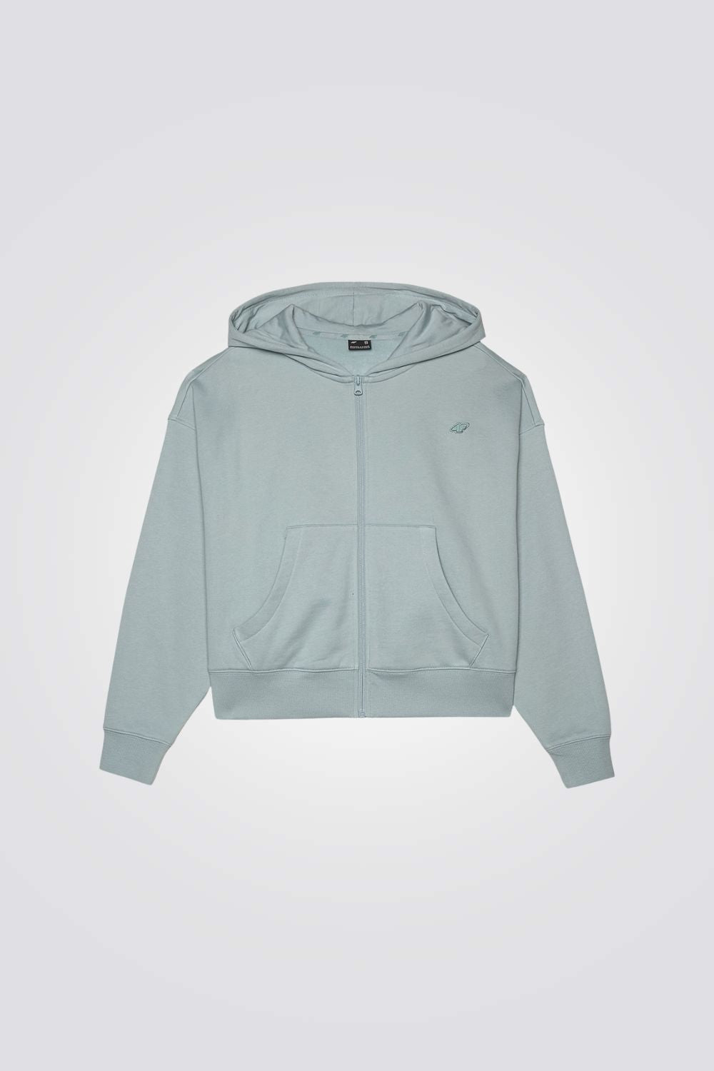 סווטשירט קפוצ'ון לנשים מבית המותג F4, בצבע ירוק מנטה, סגירת רוכסן ושני כיסים צדדיים.