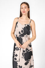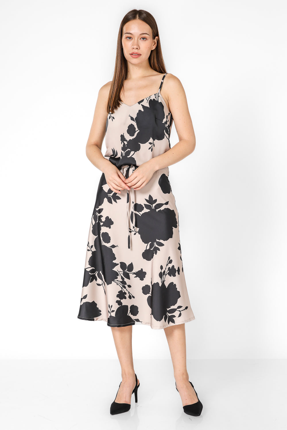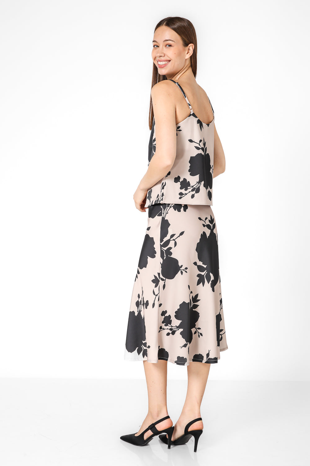 עליונית סאטן בהדפס פרחים בצבע בז'