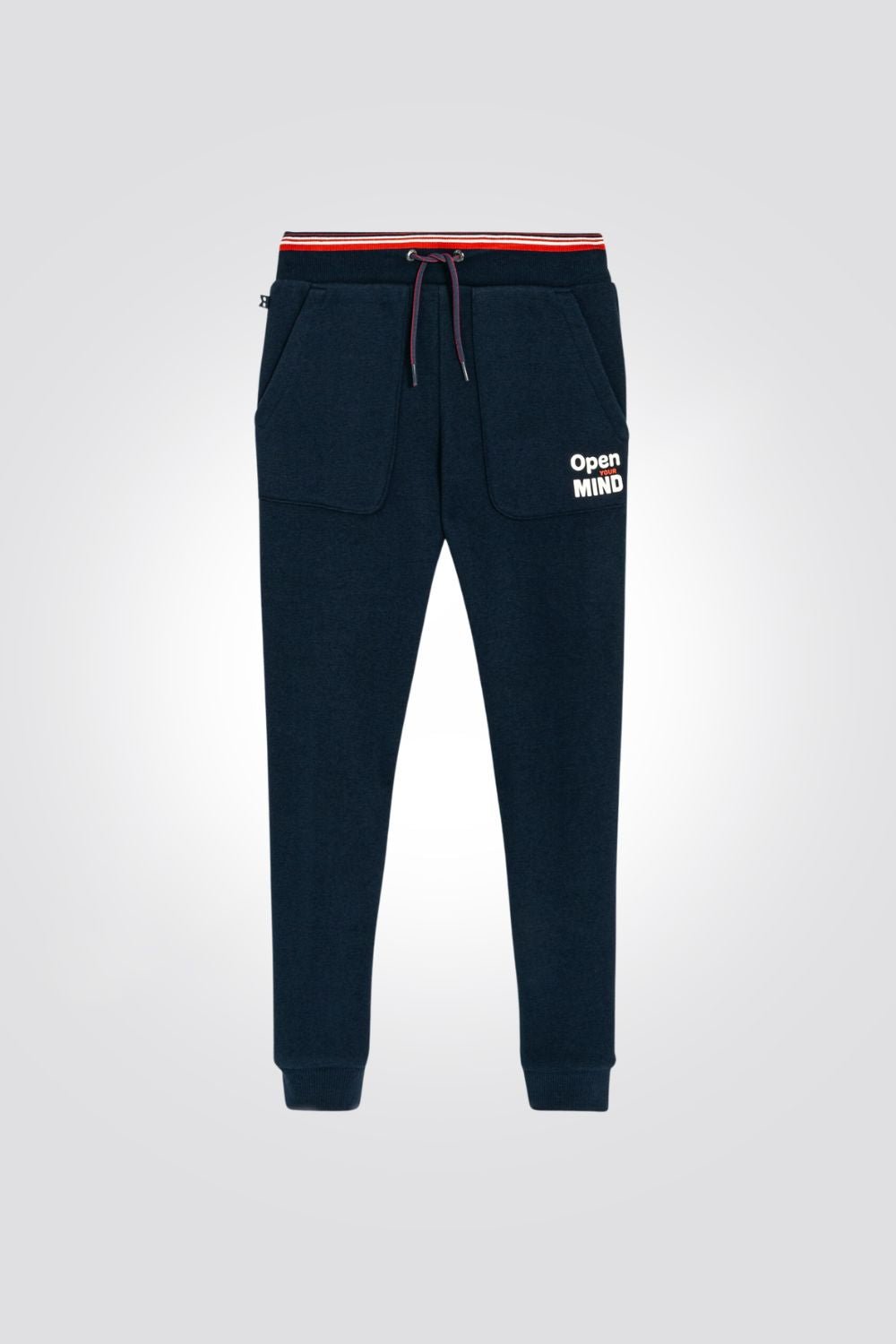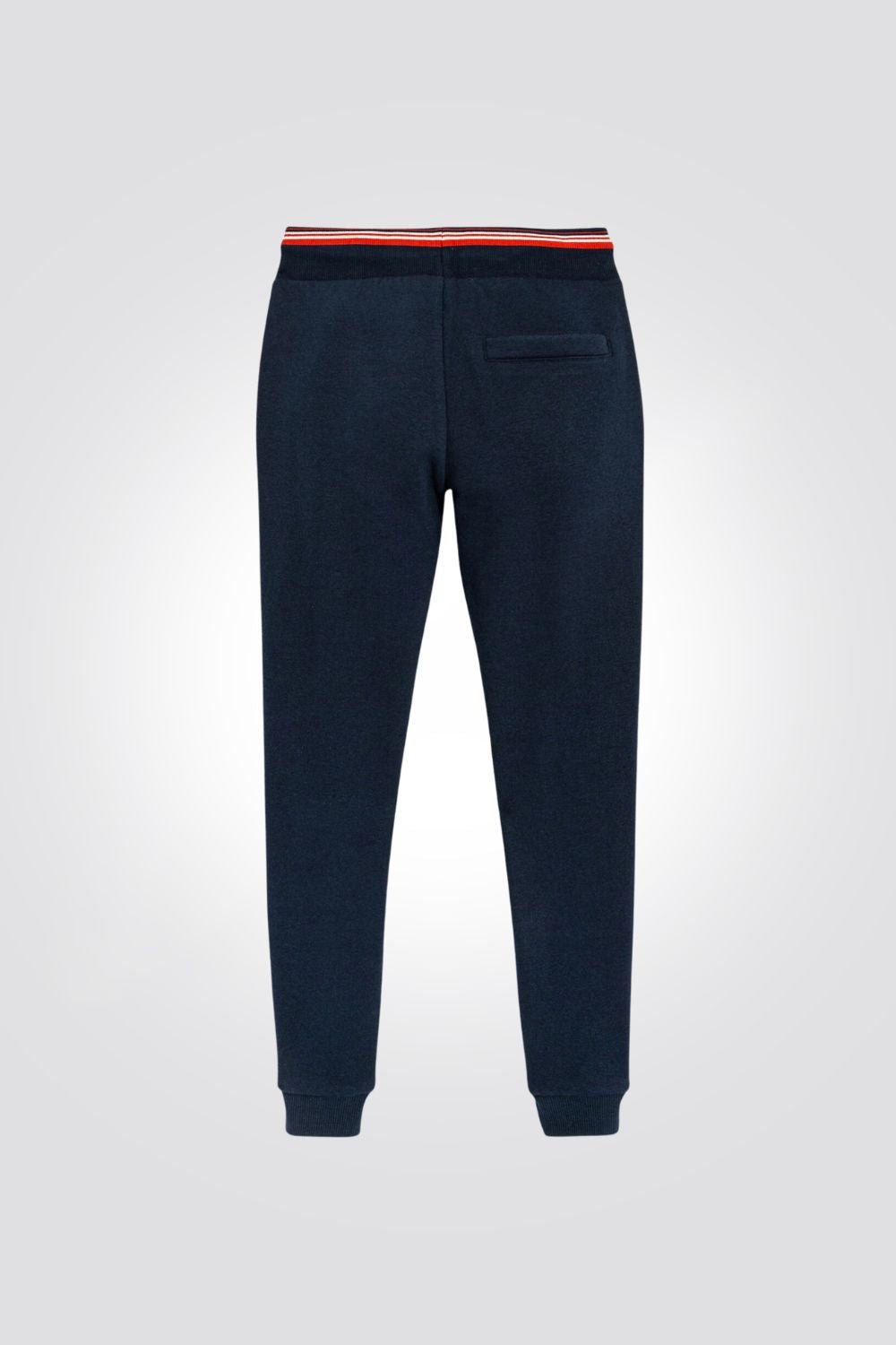 מכנסי טרנינג לילדים בצבע כחול עם גומי כתום