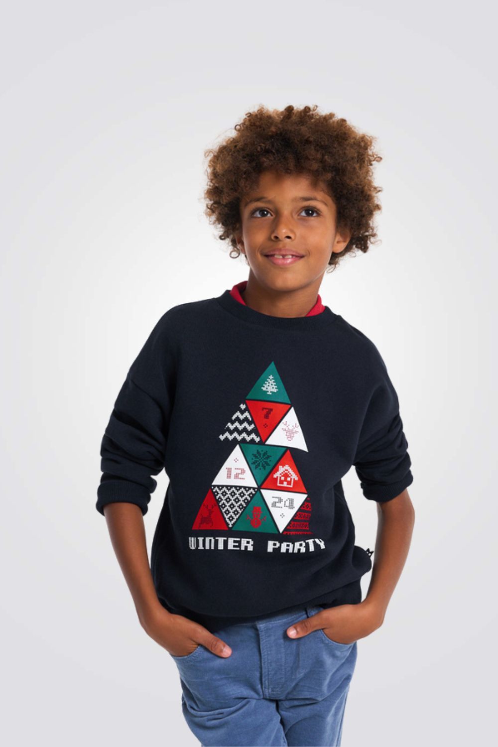 סווטשירט לילדים בצבע נייבי עם הדפס צבעוני