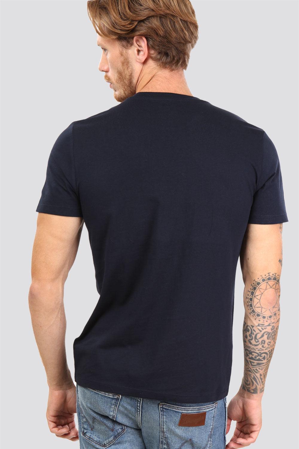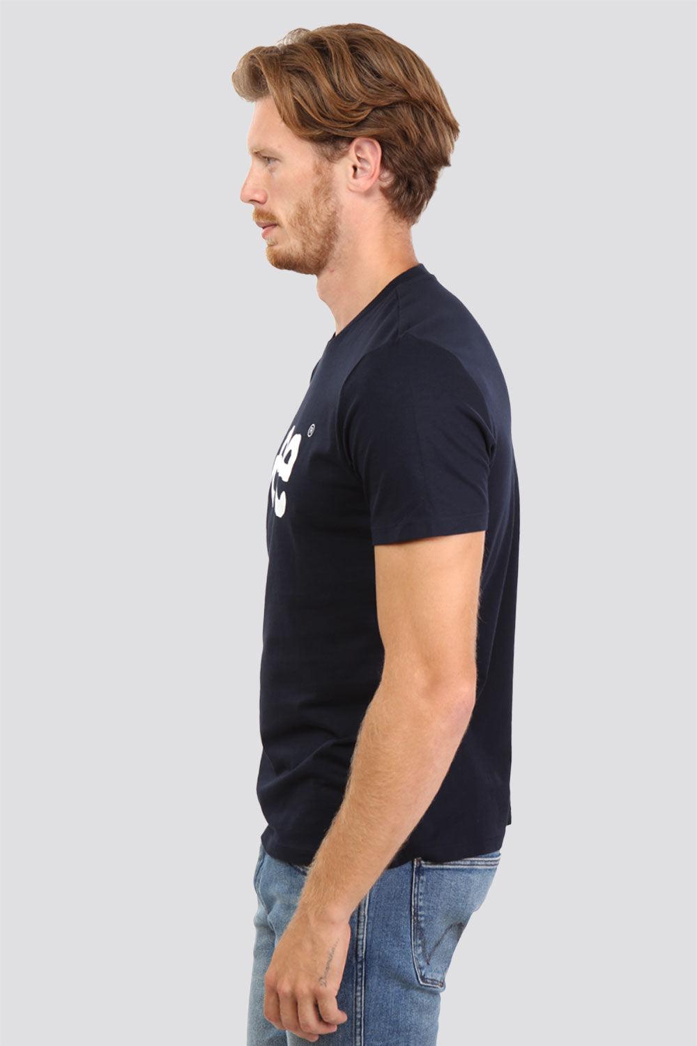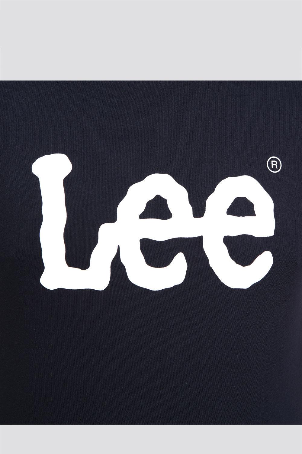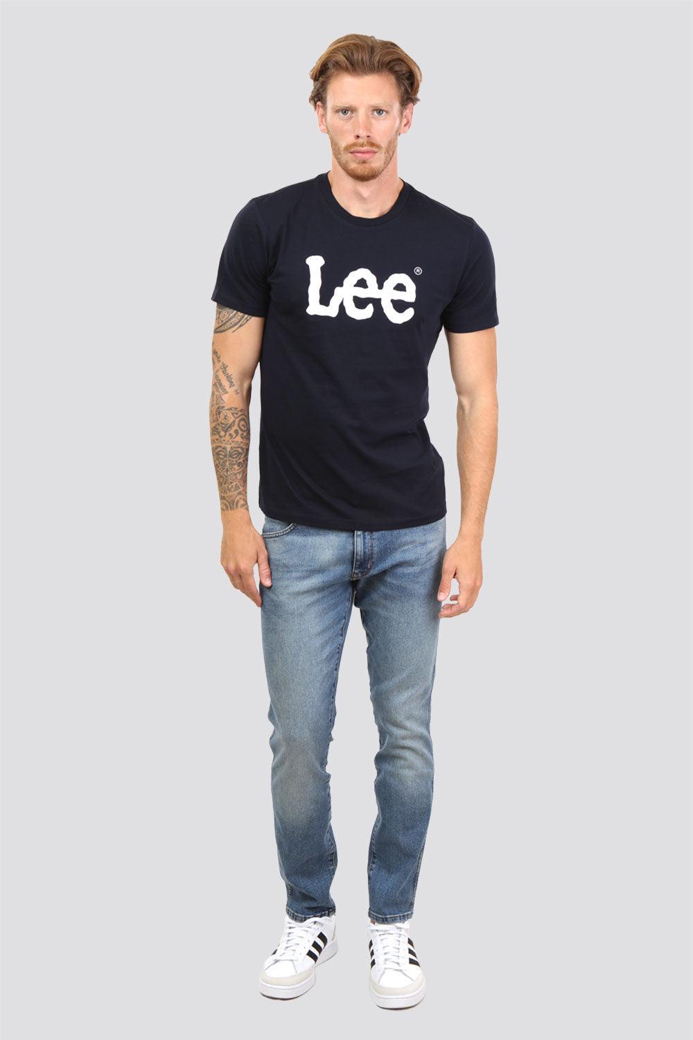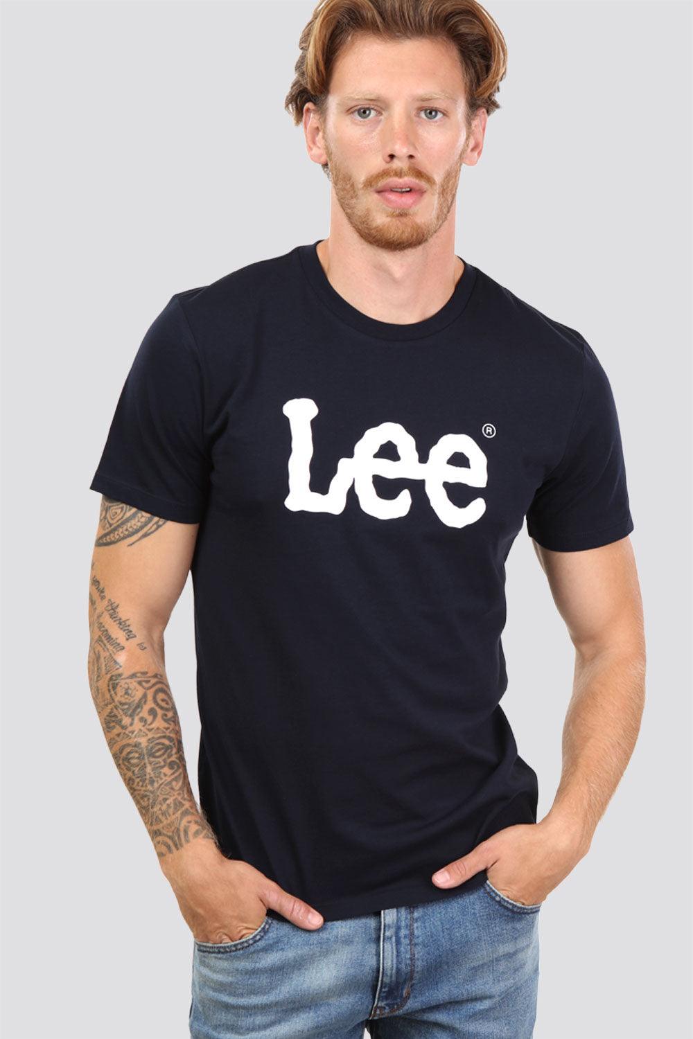 טישירט בצבע כחול נייבי מבית המותג LEE. טישירט כחולה שרוולים קצרים צווארון עגול, הדפס לוגו בצבע לבן בקדמת החולצה..