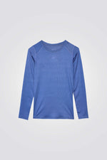 חולצה ארוכה לנשים מבית המותג F4, בצבע כחול, נוחה וקלילה ומתאימה לאימונים, צווארון עגול.