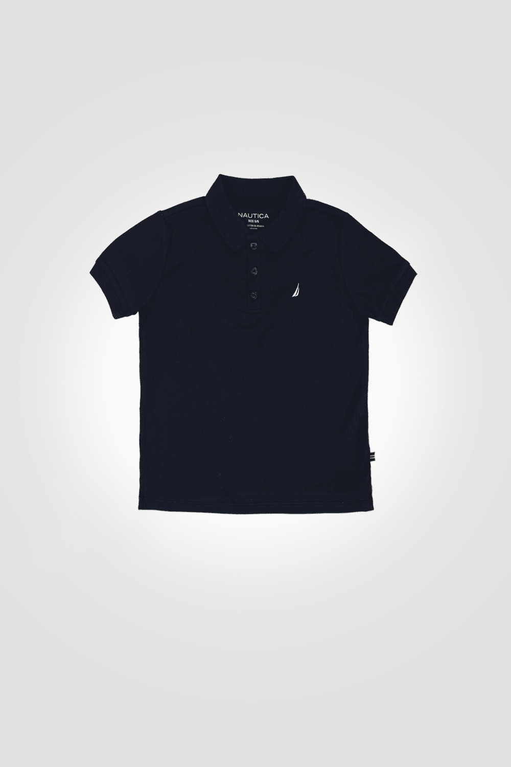 חולצה של המותג NAUTICA לילדים. חולצת פולו בגזרה ישרה עם לוגו בחזית צווארון עם דשים מצולעים.