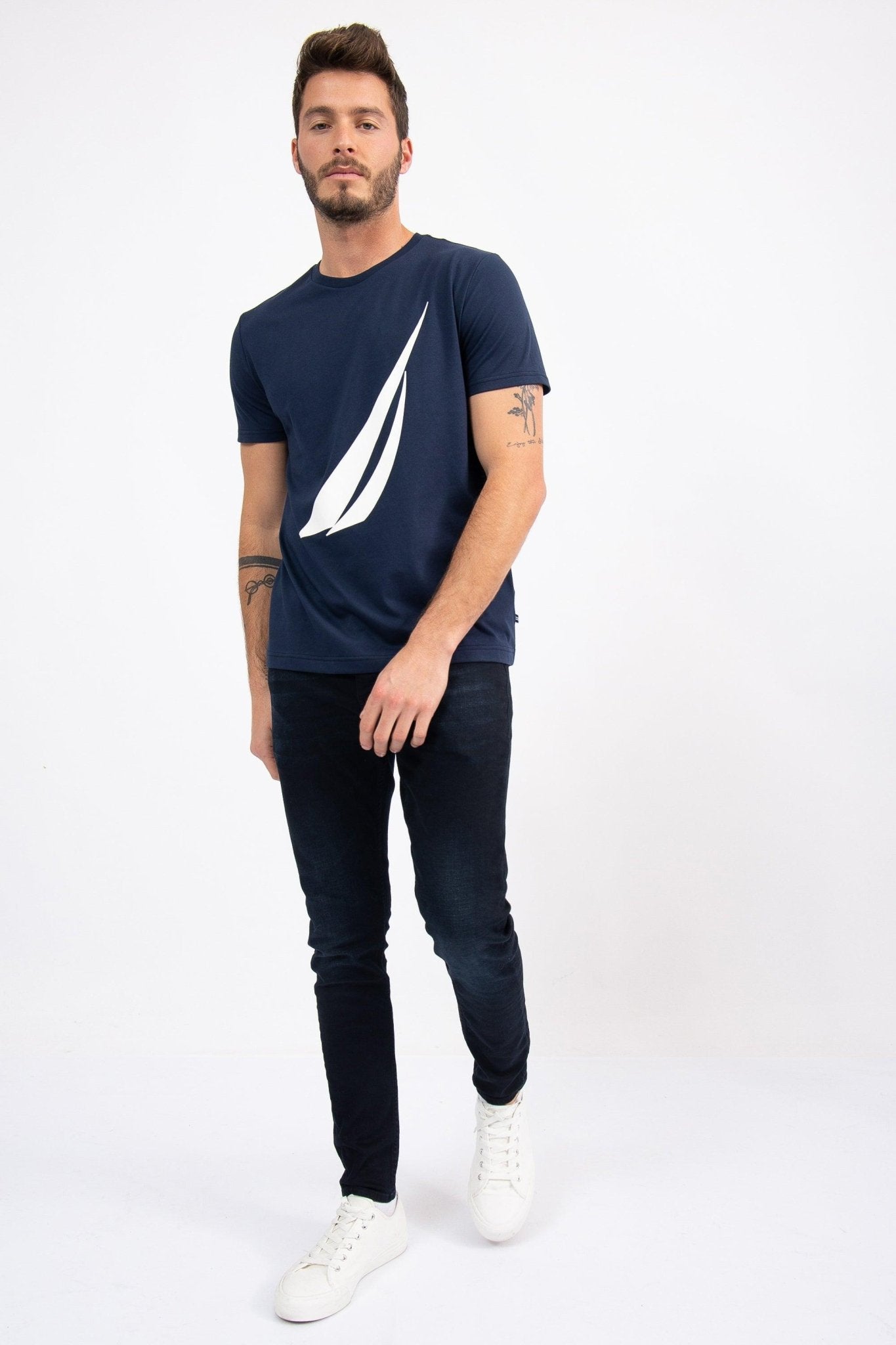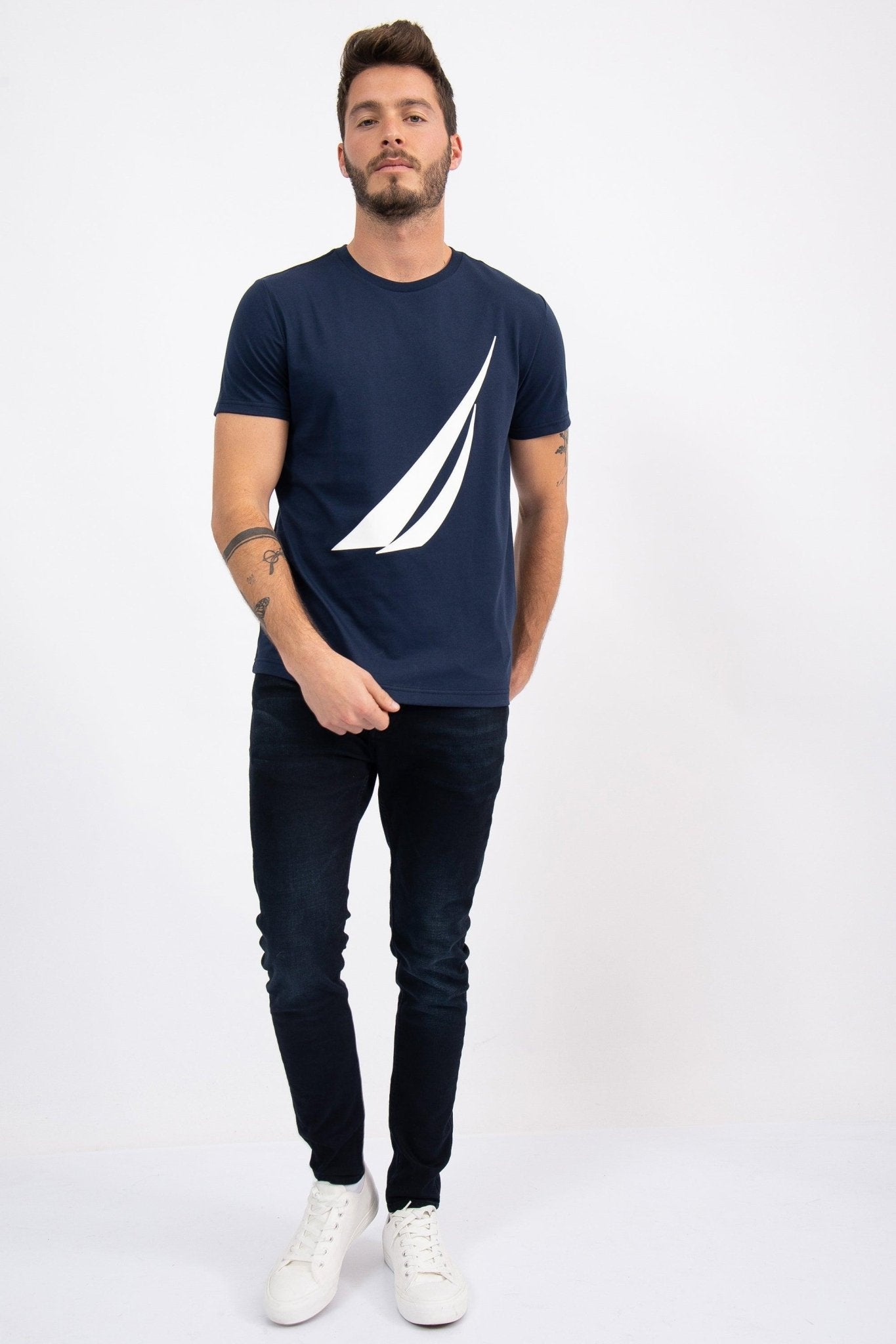 חולצה מבית המותג NAUTICA. בעלת צווארון עגול ושרוולים קצרים , לוגו המותג מופיע בגדול במרכז החולצה, טישירט איכותי שחייב בכל ארון