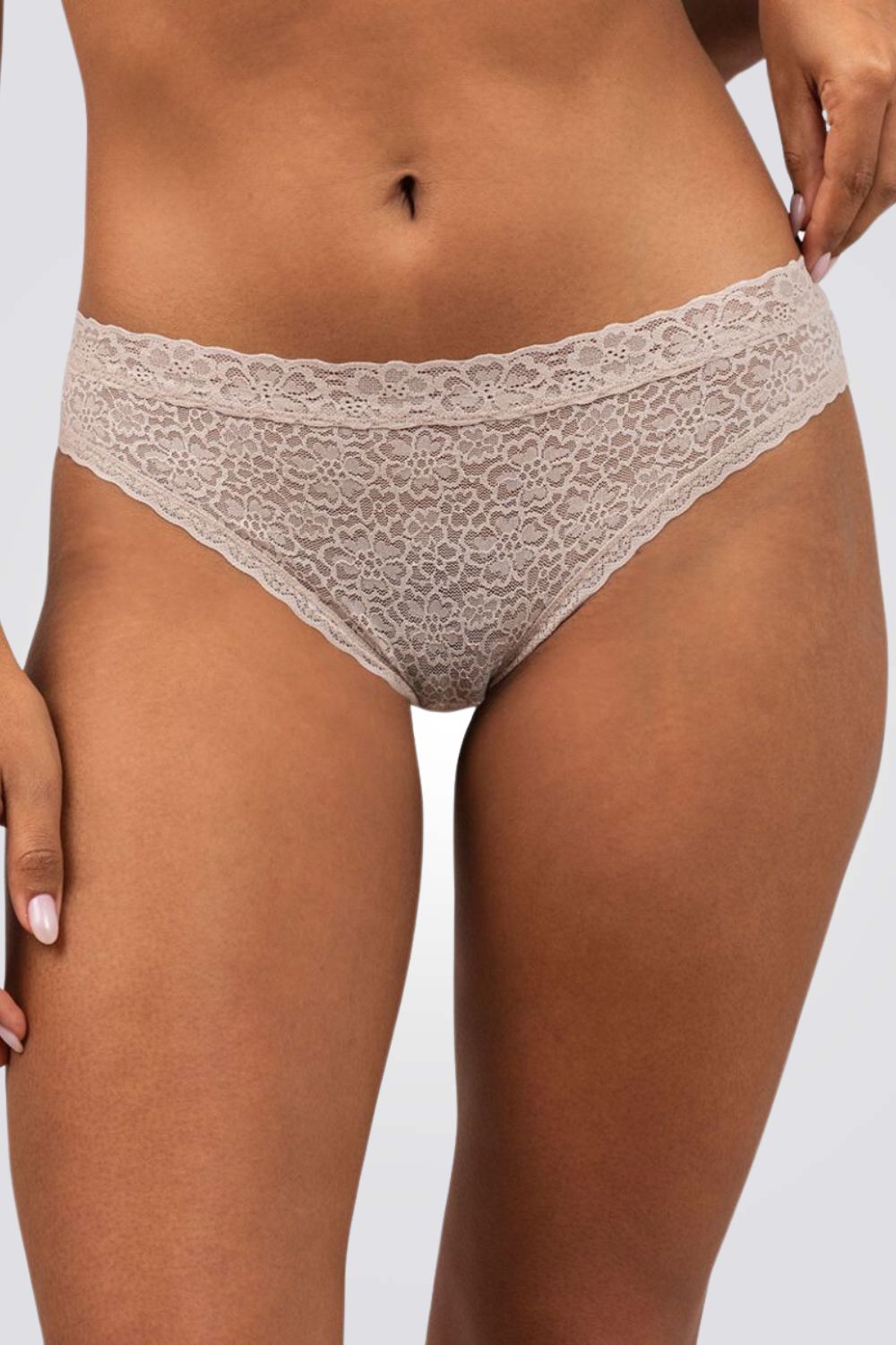 תחתוני ביקיני מחמיאים, עשויים מבד תחרה פרחוני ורומנטי.