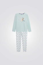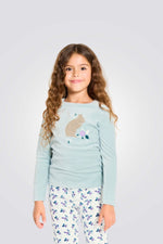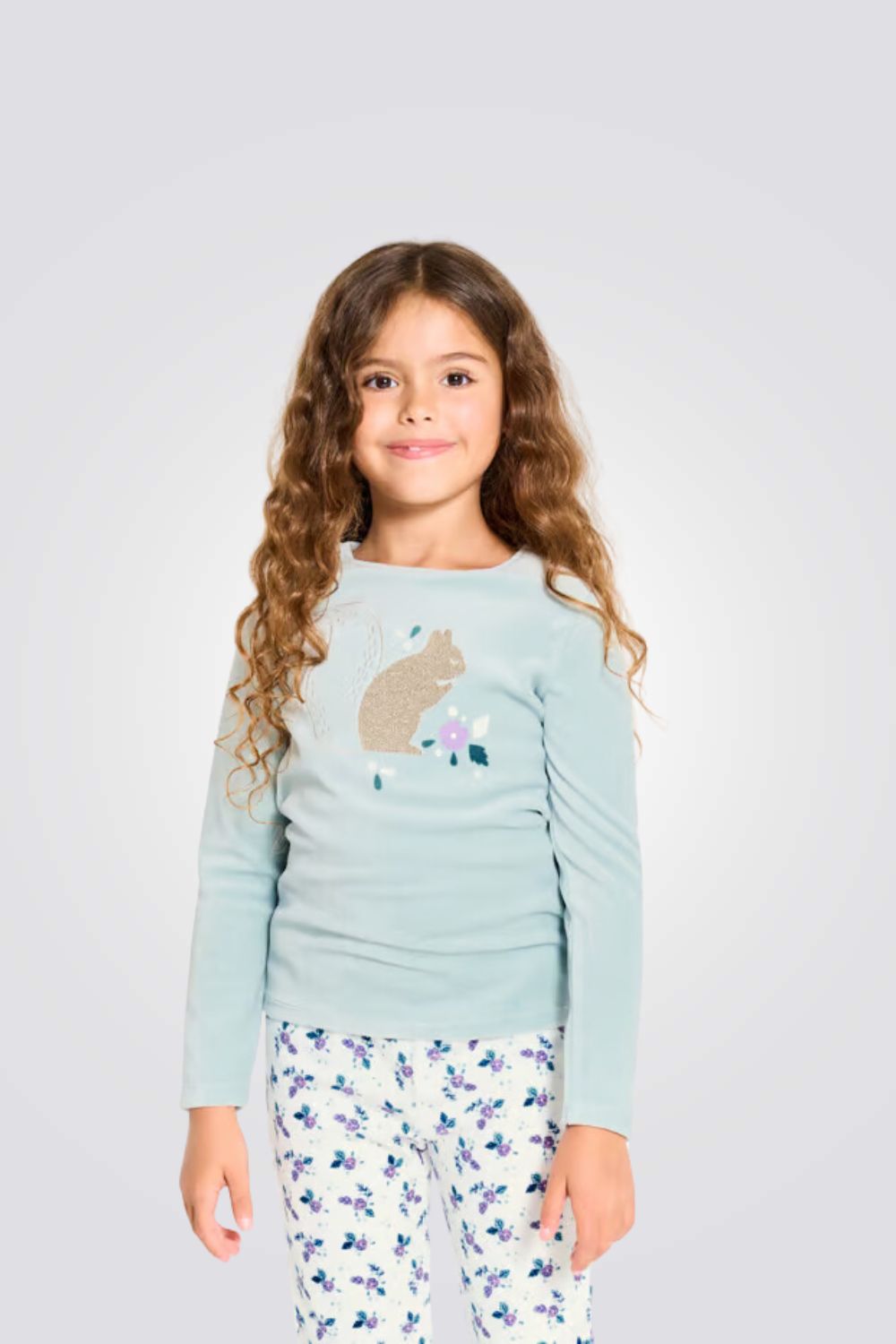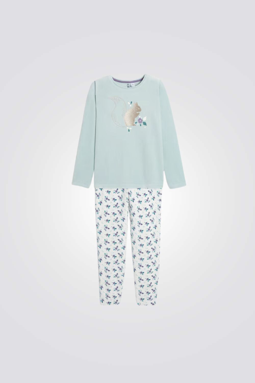סט פיג'מה לילדות בצבע תכלת הדפס פרחוני